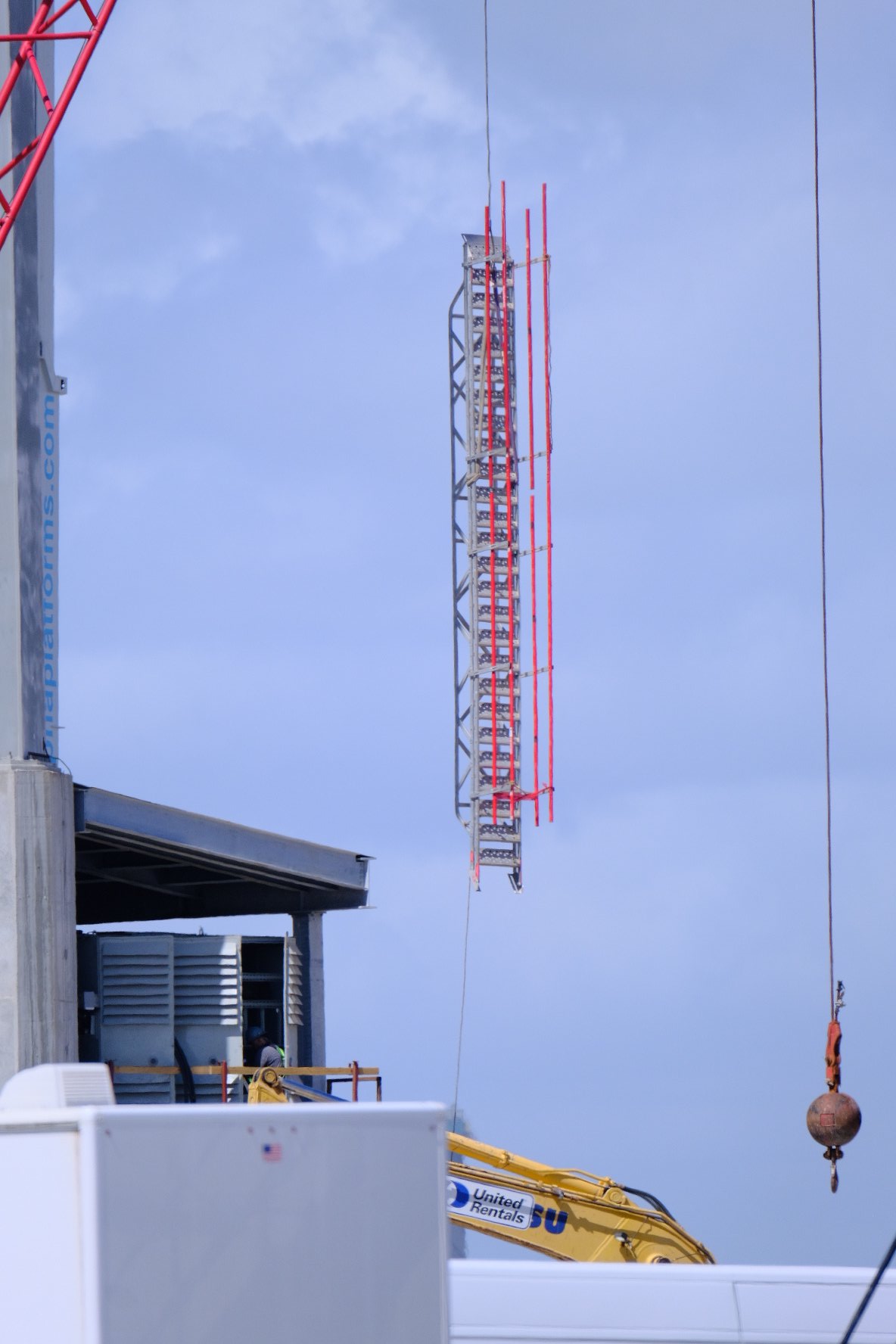 Трубы будут обходить стартовый стол слева и справа, возможно заправка бустера будет из двух "стволов". К башне коммуникации еще не проложены. Думаю, к ней пойдет ветка от правого "ствола".