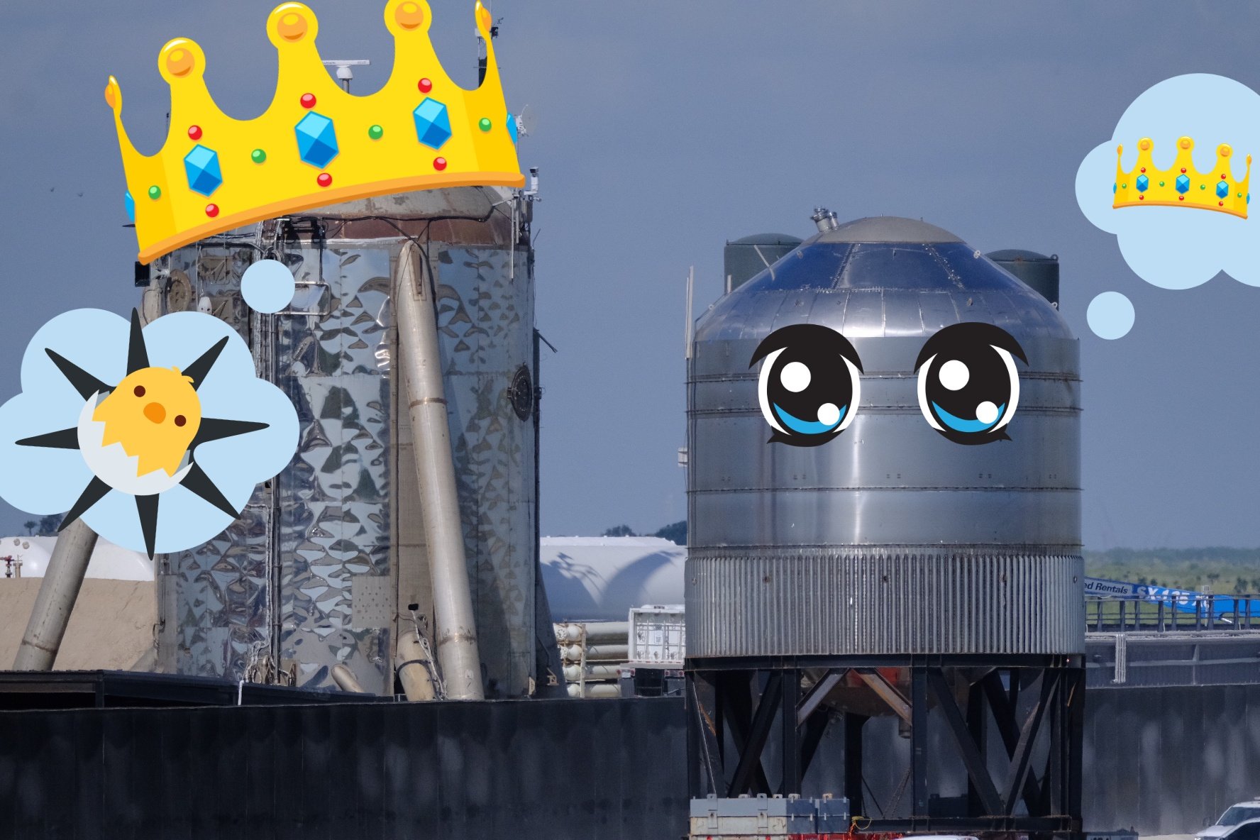 Я надеюсь что пусковая площадка всё-таки будет подальше от всех этих заправочных канистр - а то если Старшип рванёт на старте то это будет самый большой фейверк в истории космонавтики ещё и потому что все окружающие баллоны добавят взрывов.