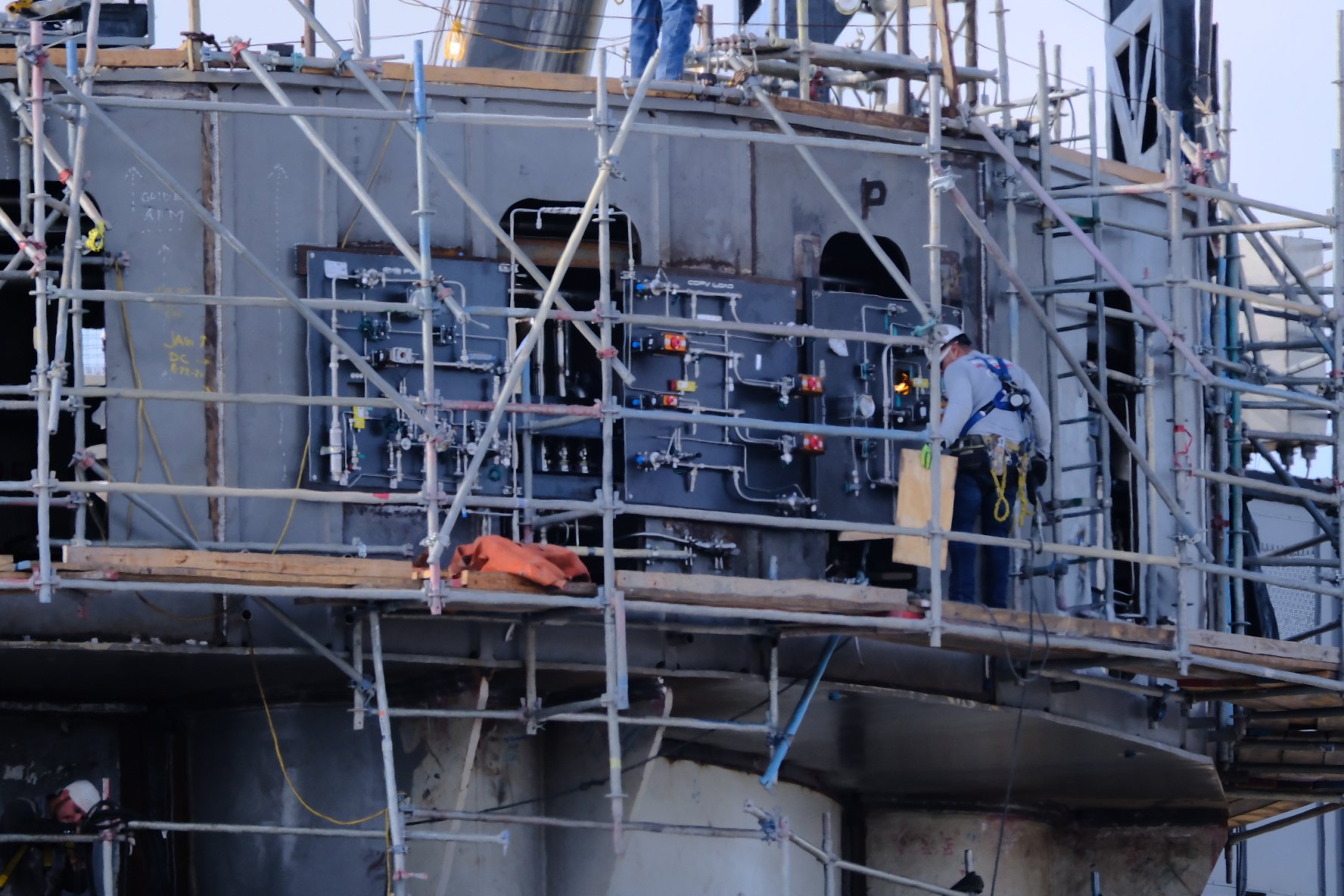 Смотрю, как заботливо завешивают Башню тентами