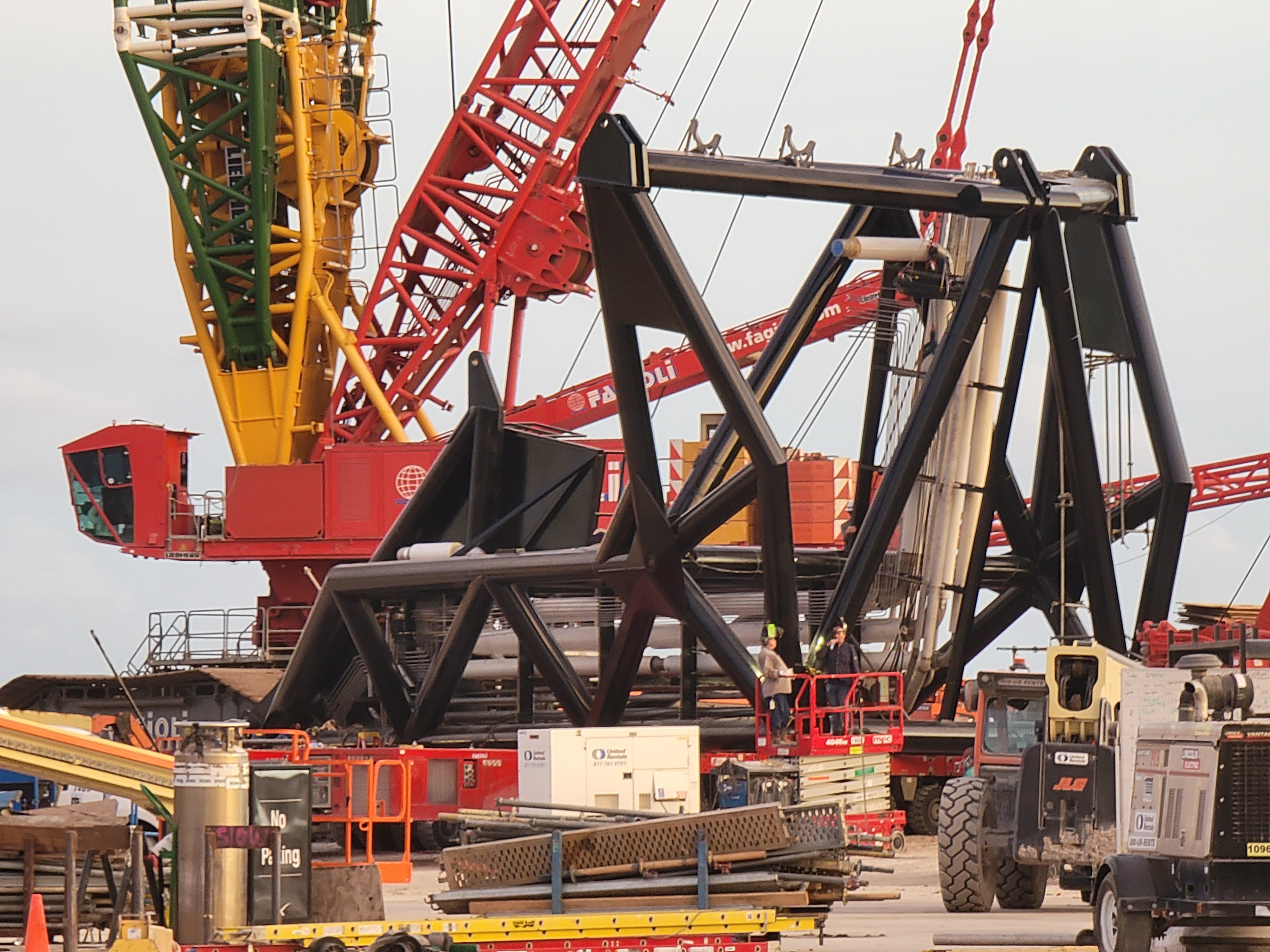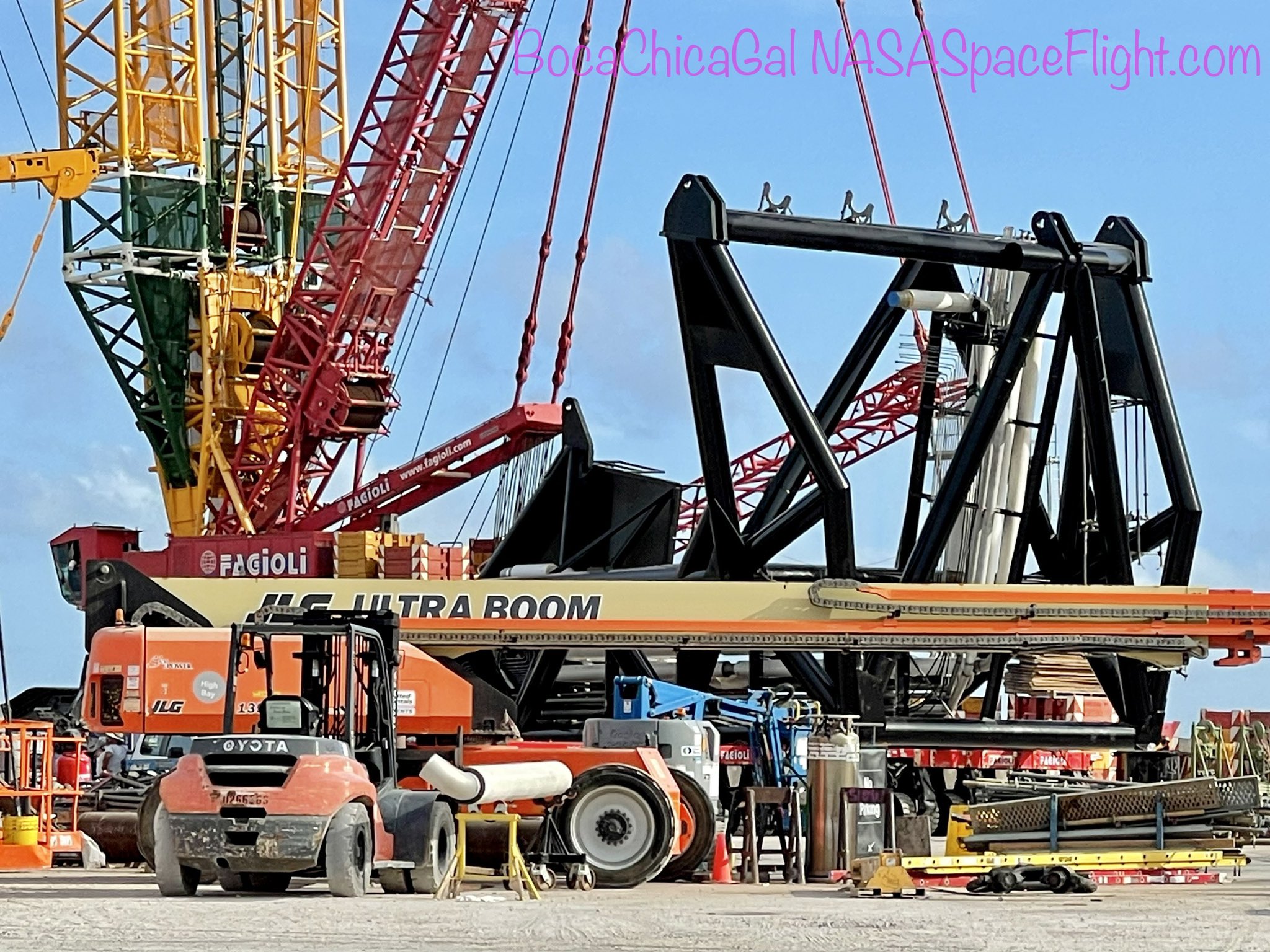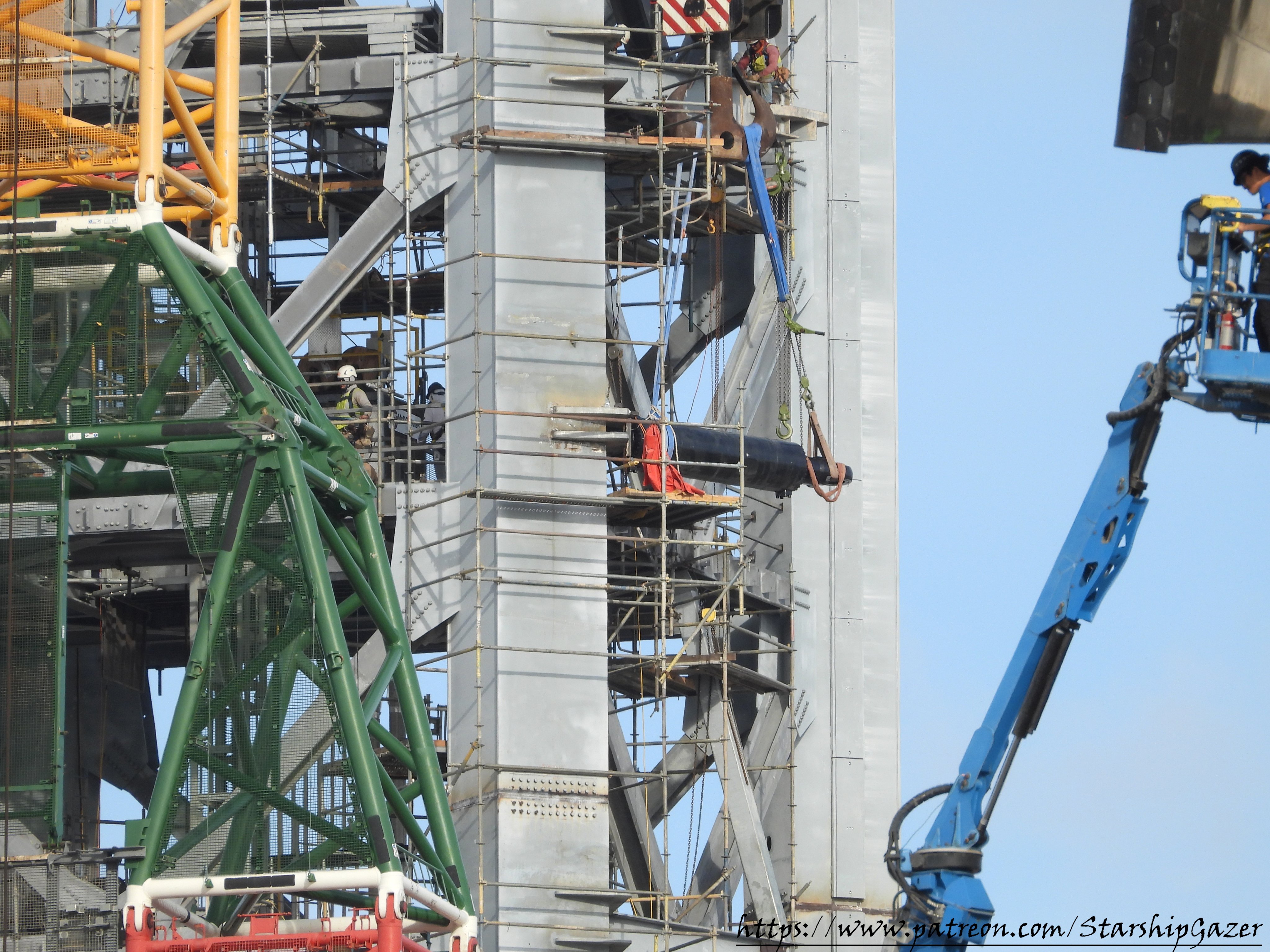 The Quick Disconnect arm is on the transporter and is being moved to the orbital launch pad.
