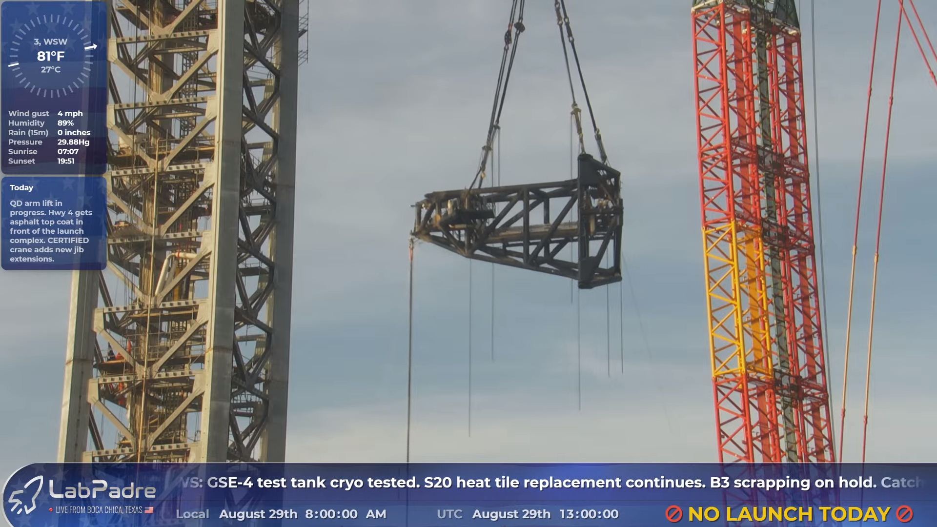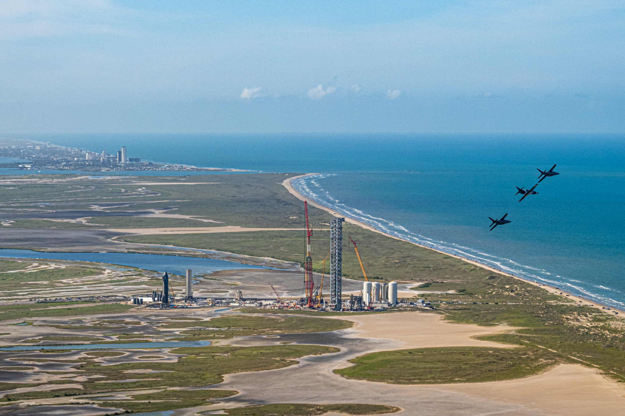 Астронавты Inspiration4 пролетели над Звездной базой во время тренировочного полета, и перед установкой на стартовой башне был повернут шток Starship QD Arm.