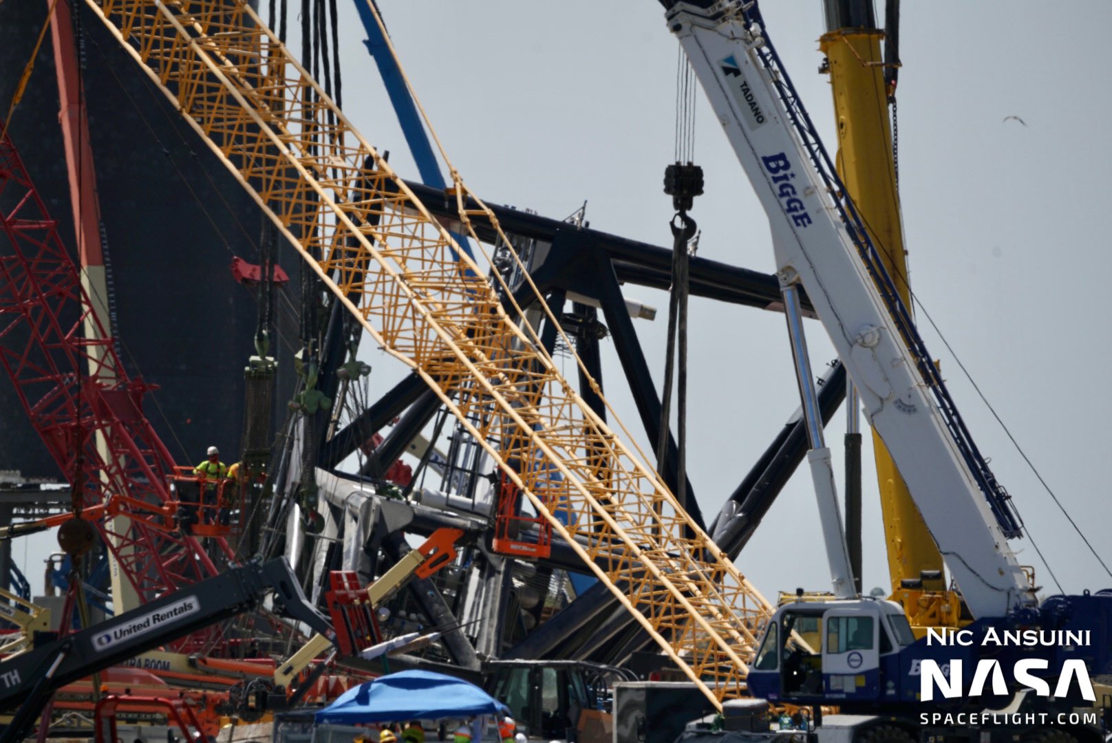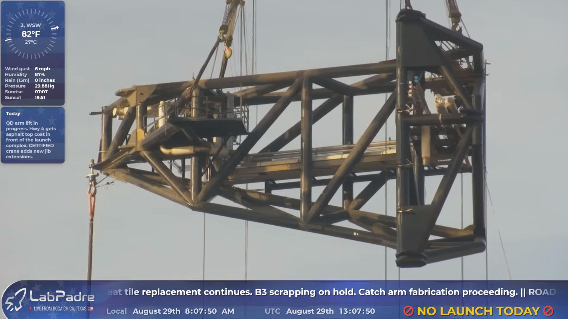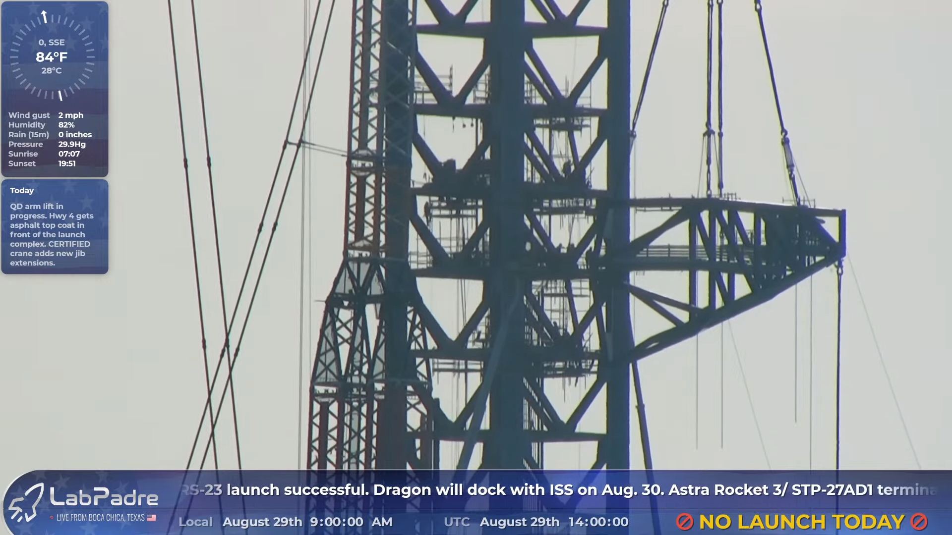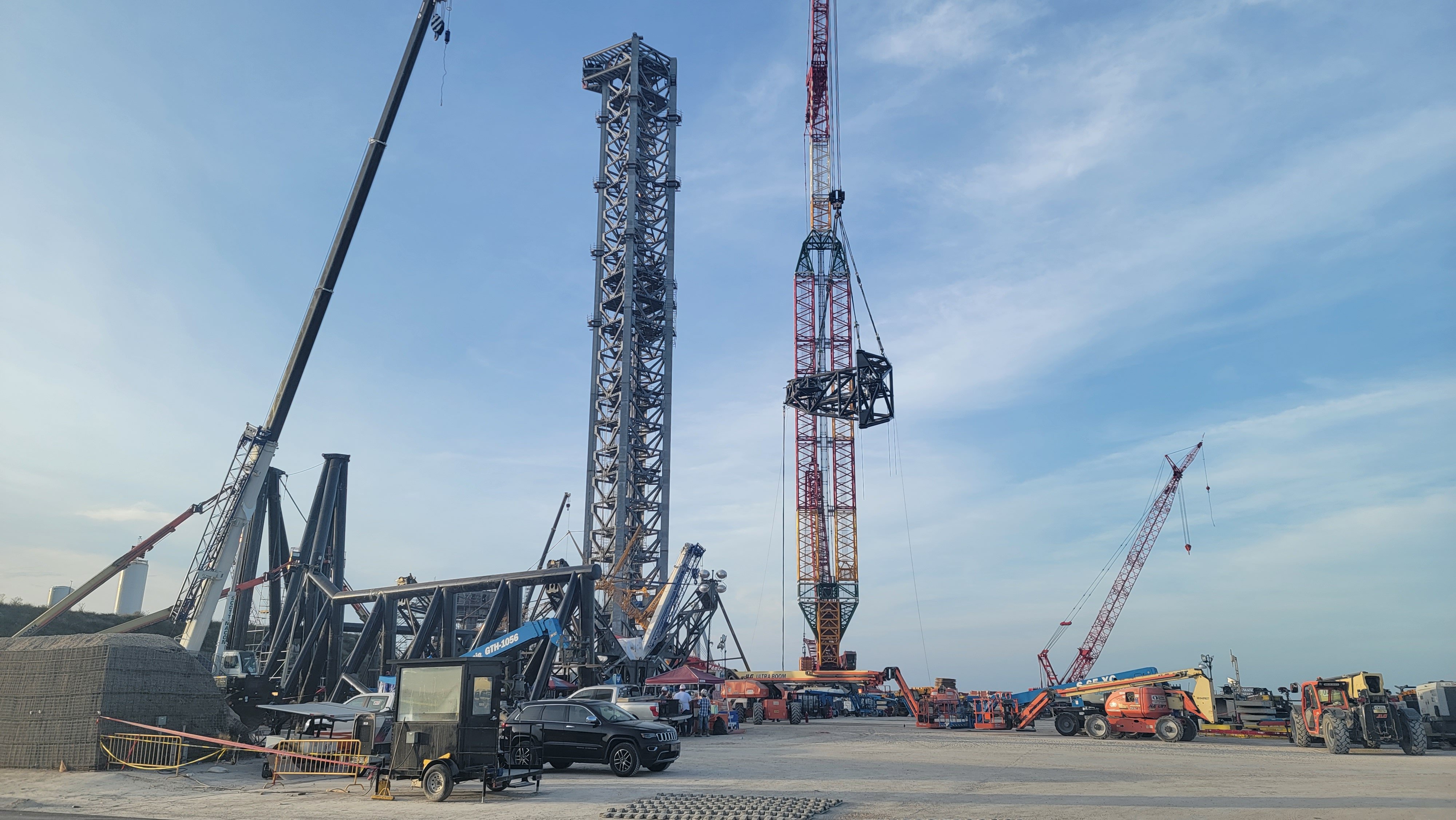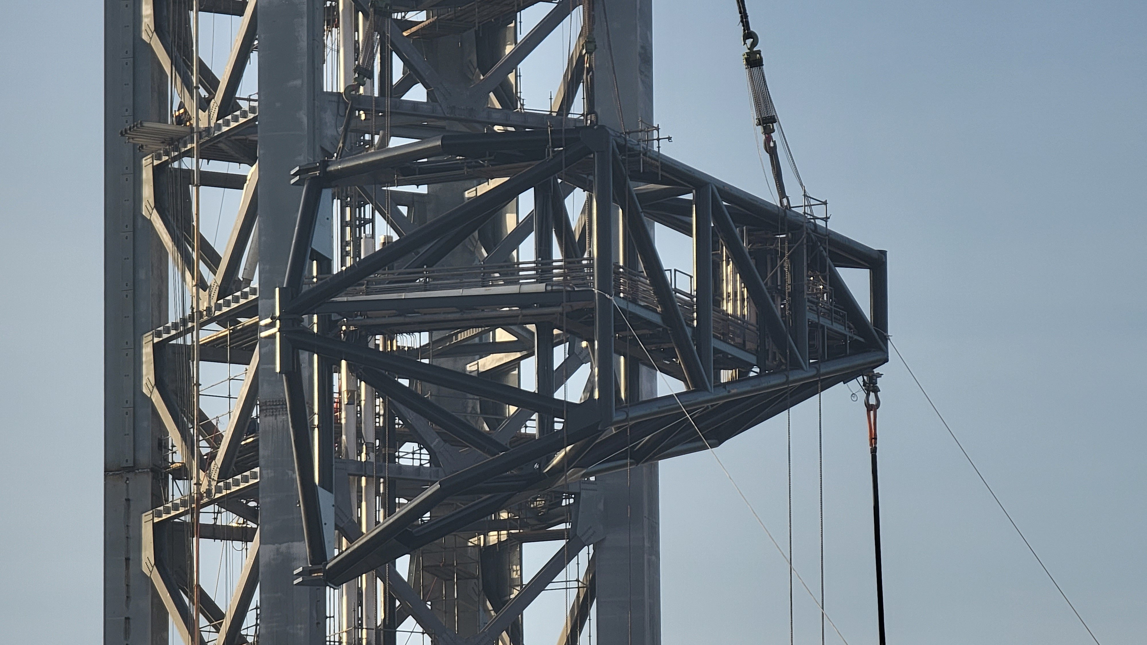 Пишут, что The Inspiration4 Astronauts flew over Starbase on a training flight, and the Starship QD Arm was rotated ahead of installation on the Launch Tower.