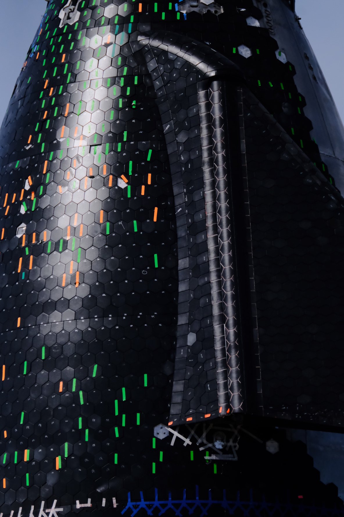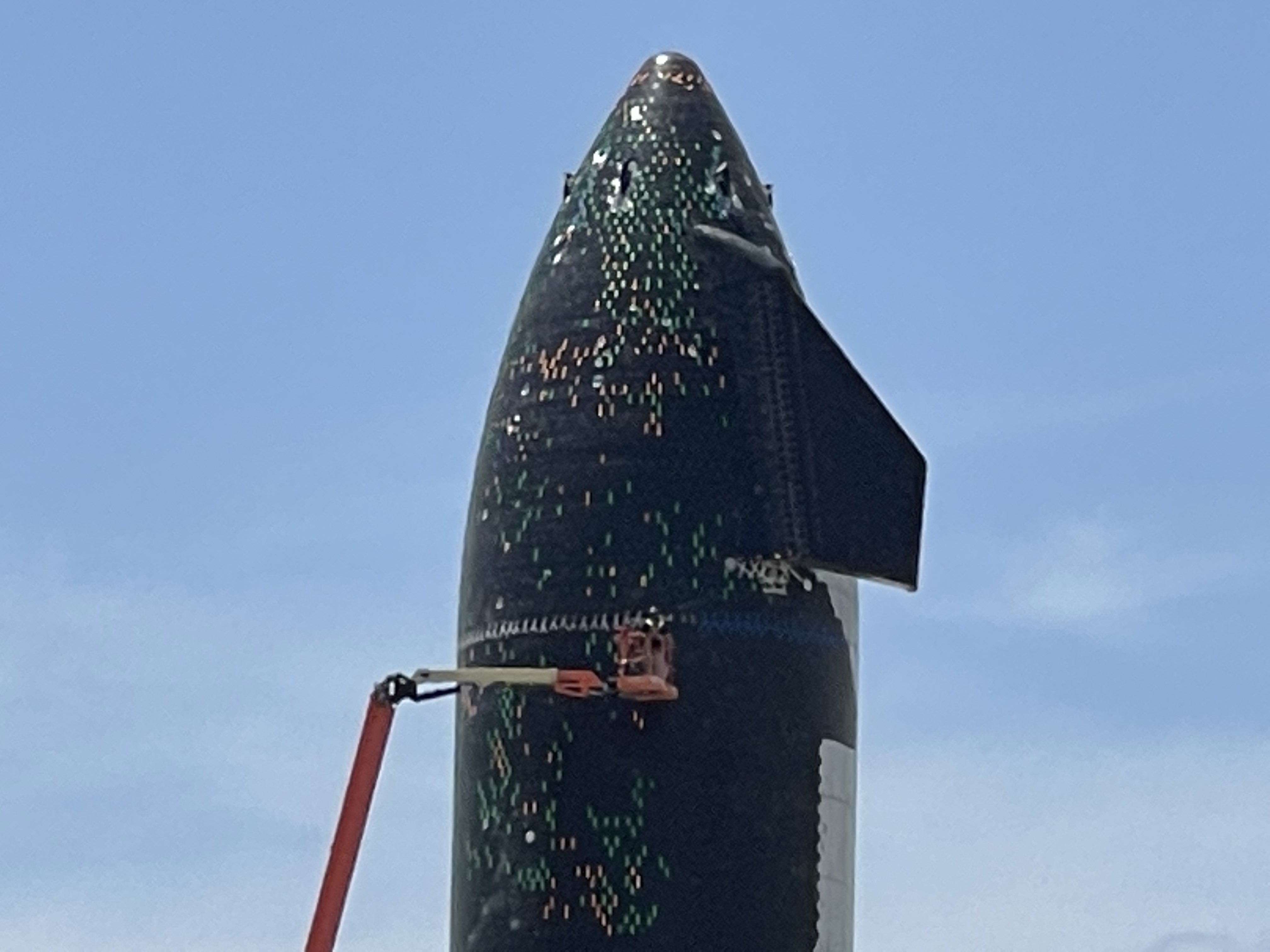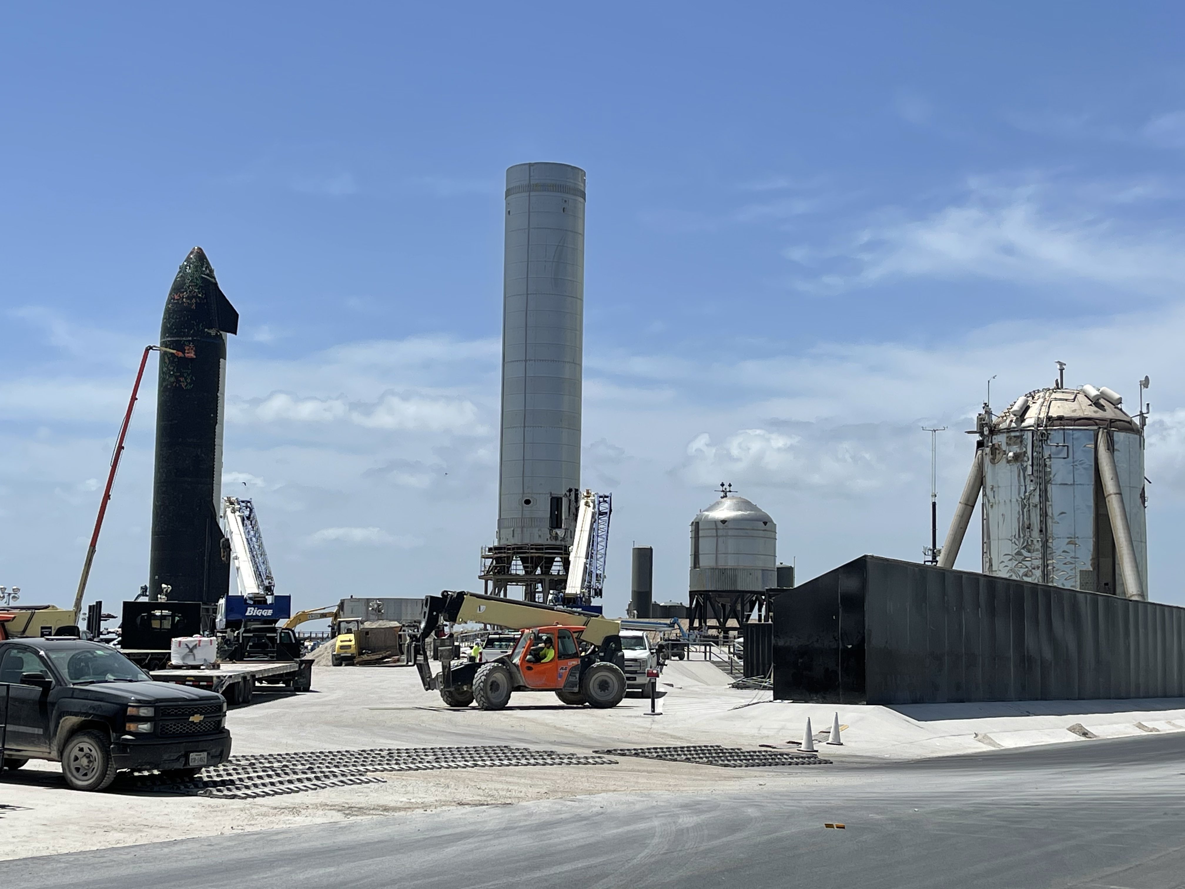 Так же на площадке были замечены рулоны со сталью нового формата — толщиной 3,6 мм. Напомню, что все текущие прототипы имеют толщину стенок 4 мм. Несколько месяцев назад была предпринята попытка довольно радикалтно, на 25% уменьшить их толщину — до 3мм. Но, судя по всему, испытания тестового бака прошли не слишком успешно. Теперь вот предпринята более умеренная попытка снизить толщину, а следовательно — и вес ракеты, на сей раз на относительно скромные 10%. Впрочем, 10% от приблизительно 100 тонн, приходящихся на массу корпуса Starship и Super Heavy — это целых 10 тонн, причем в той части, что касается именно 2-й ступени (порядка 35%), то это вообще чистая добавка к выводимой полезной нагрузке.