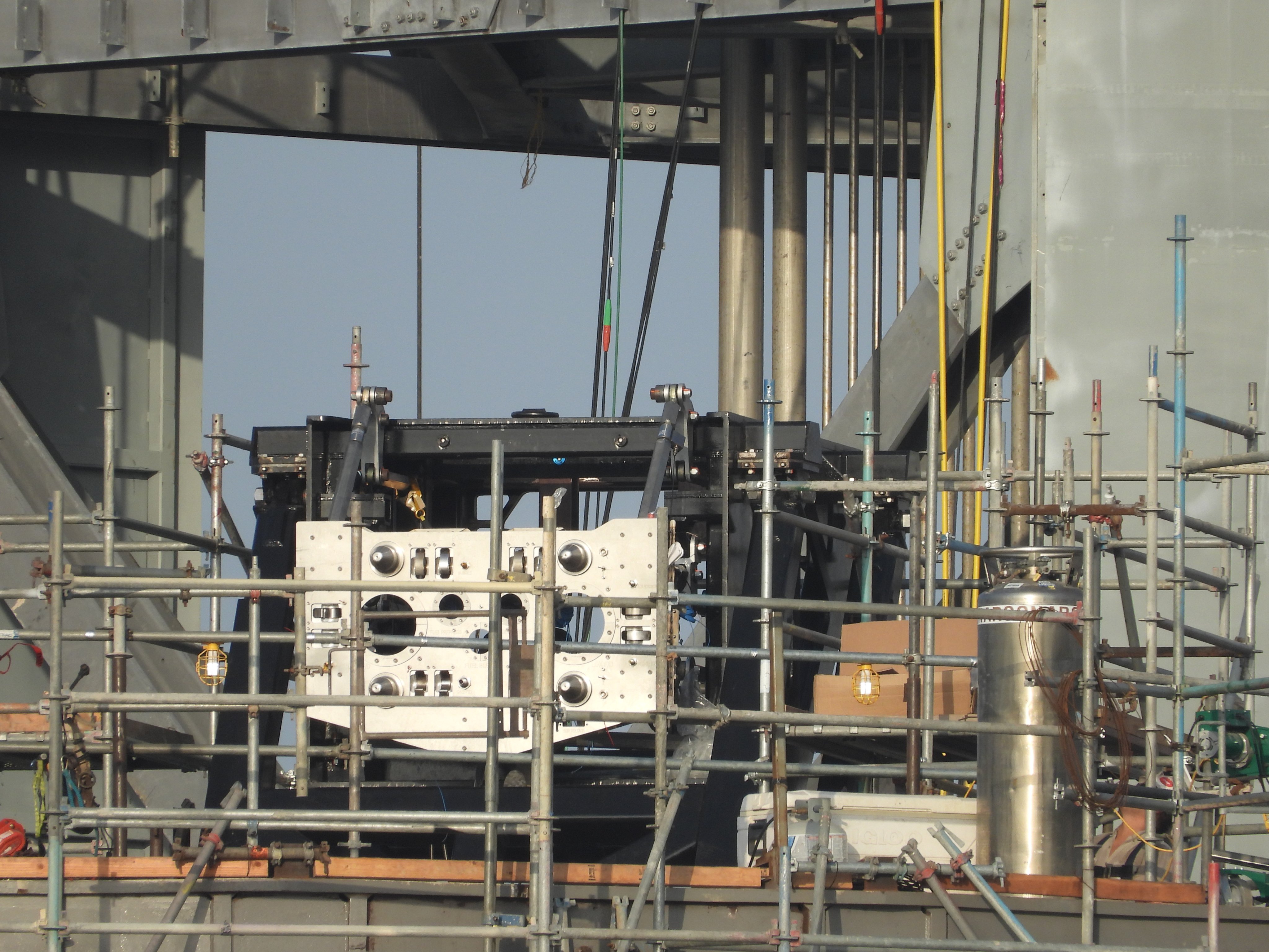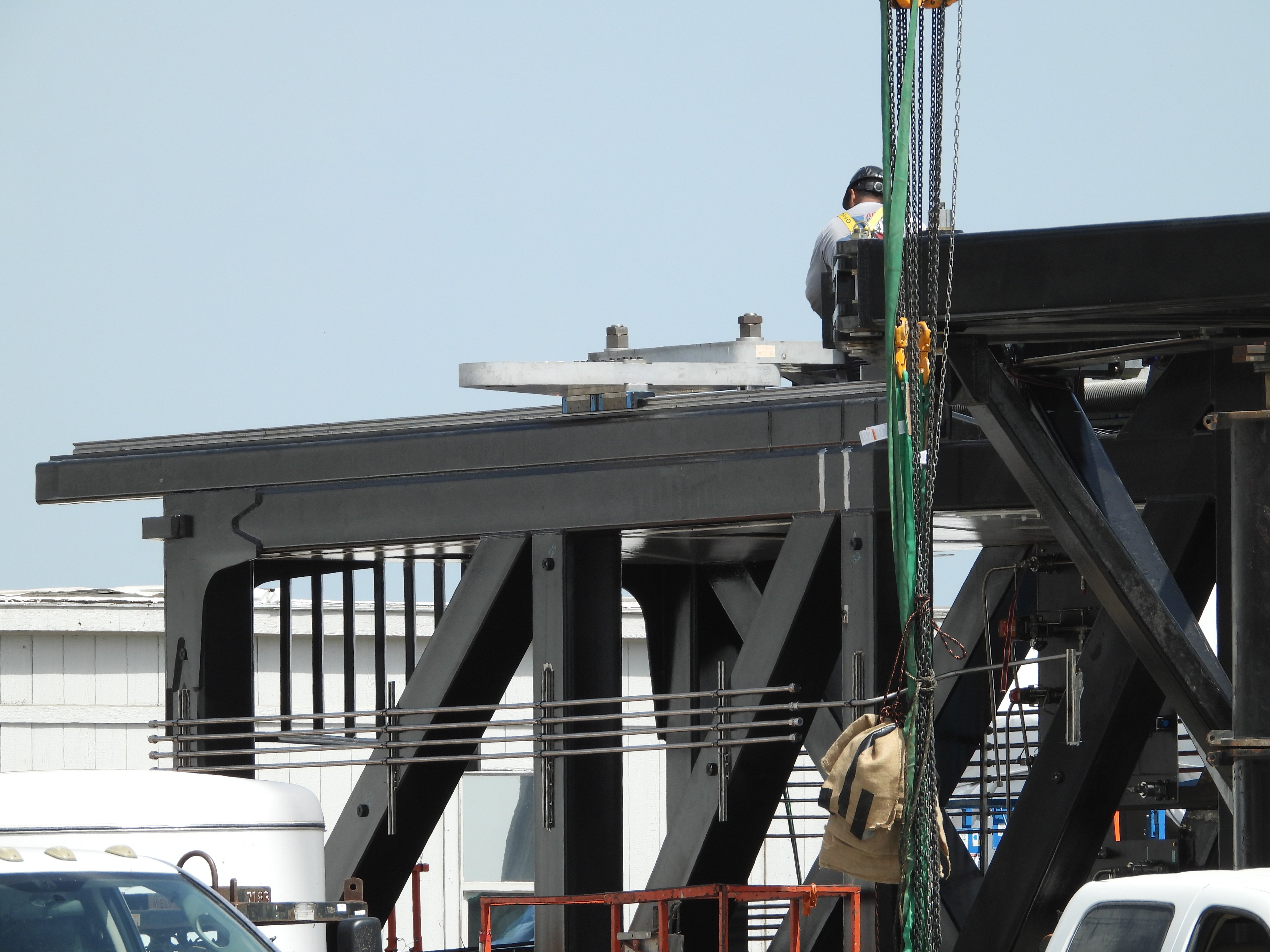 А вот это, кронштейны подвеса на Супер Хэви, выглядят нормально. Там же, в межбаке, силовой пояс для восприятия не хилых усилий с рулей во время иперзвукового вхоа в атмосферу, так что, я думаю, что эти "крючки" будут весьма прочны. Темболее, что в момент подхвата в Супер Хэви должно оставаться неболее 20-30 тонн топлива.