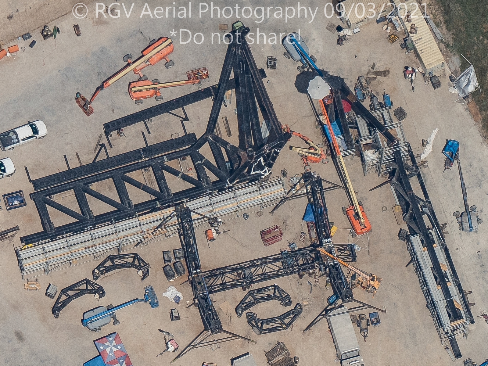 Видно, что привезенные недавно длинные балки действительно будут частью рук, собственно на них вероятно и будет опираться пойманный бустер. А круглые углубления в них видимо как-то связаны с "танковыми гусеницами" - механизмом передвижения бустера вдоль рук.
