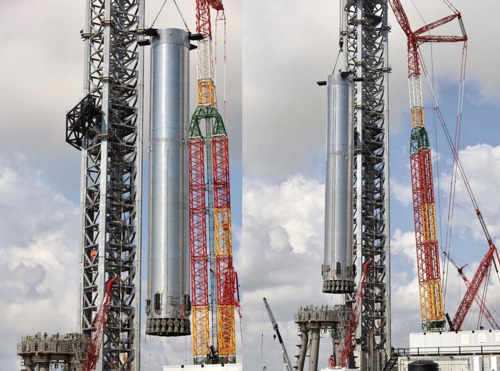 Второй раз за пять недель SpaceX установила супертяжелую ракету-носитель с 29 двигателями Raptor на формирующейся «орбитальной пусковой установке» Starship.