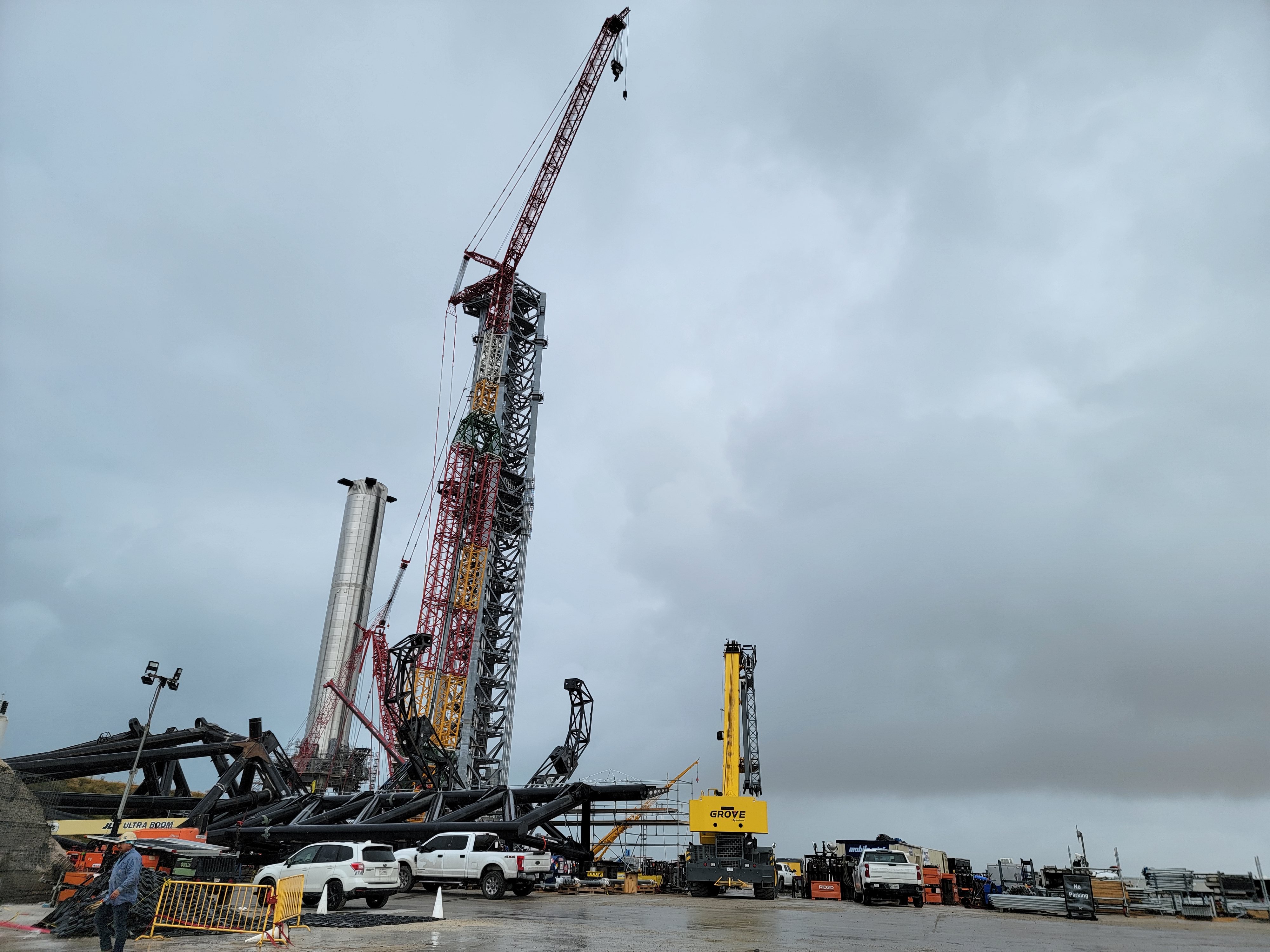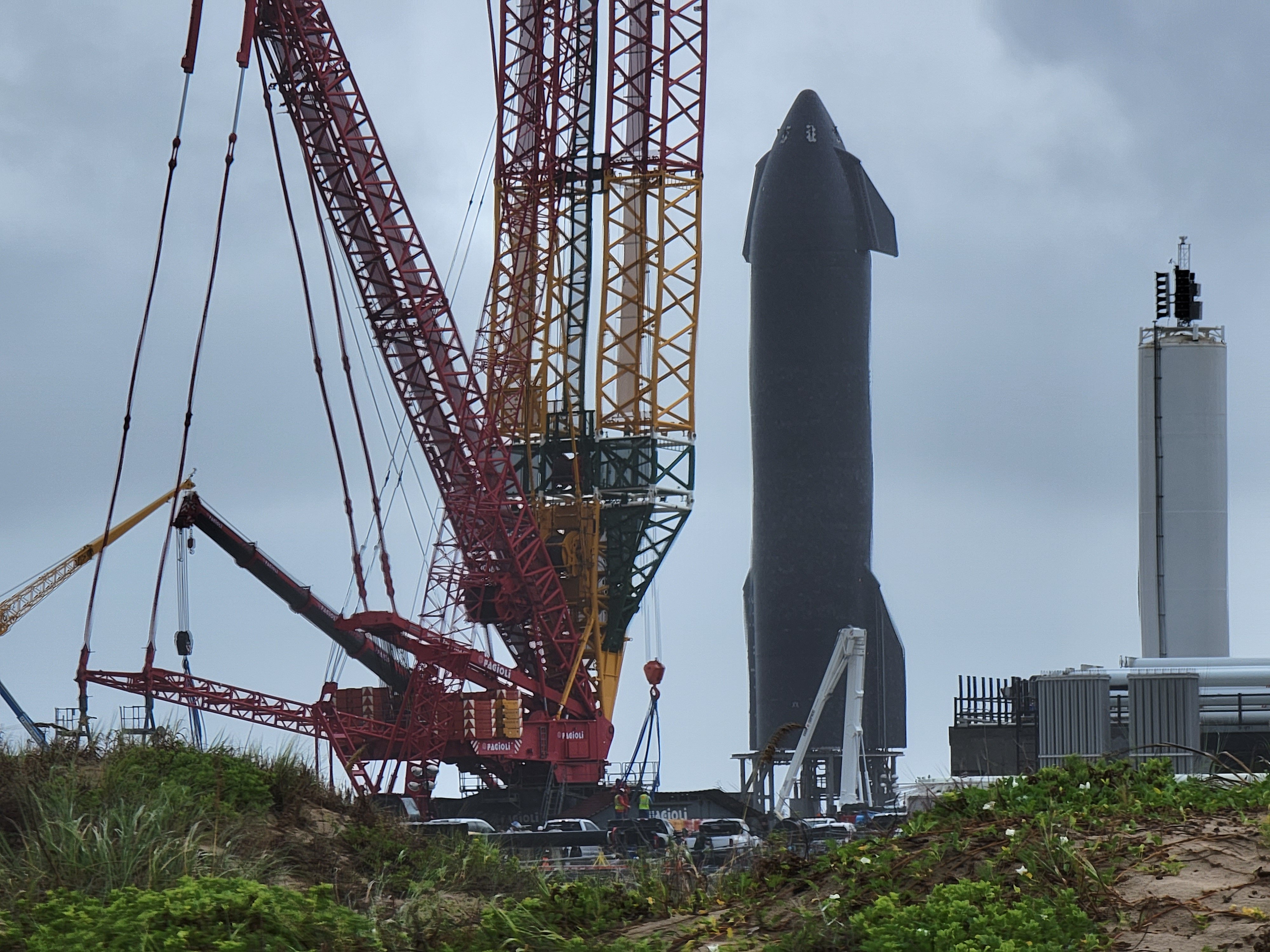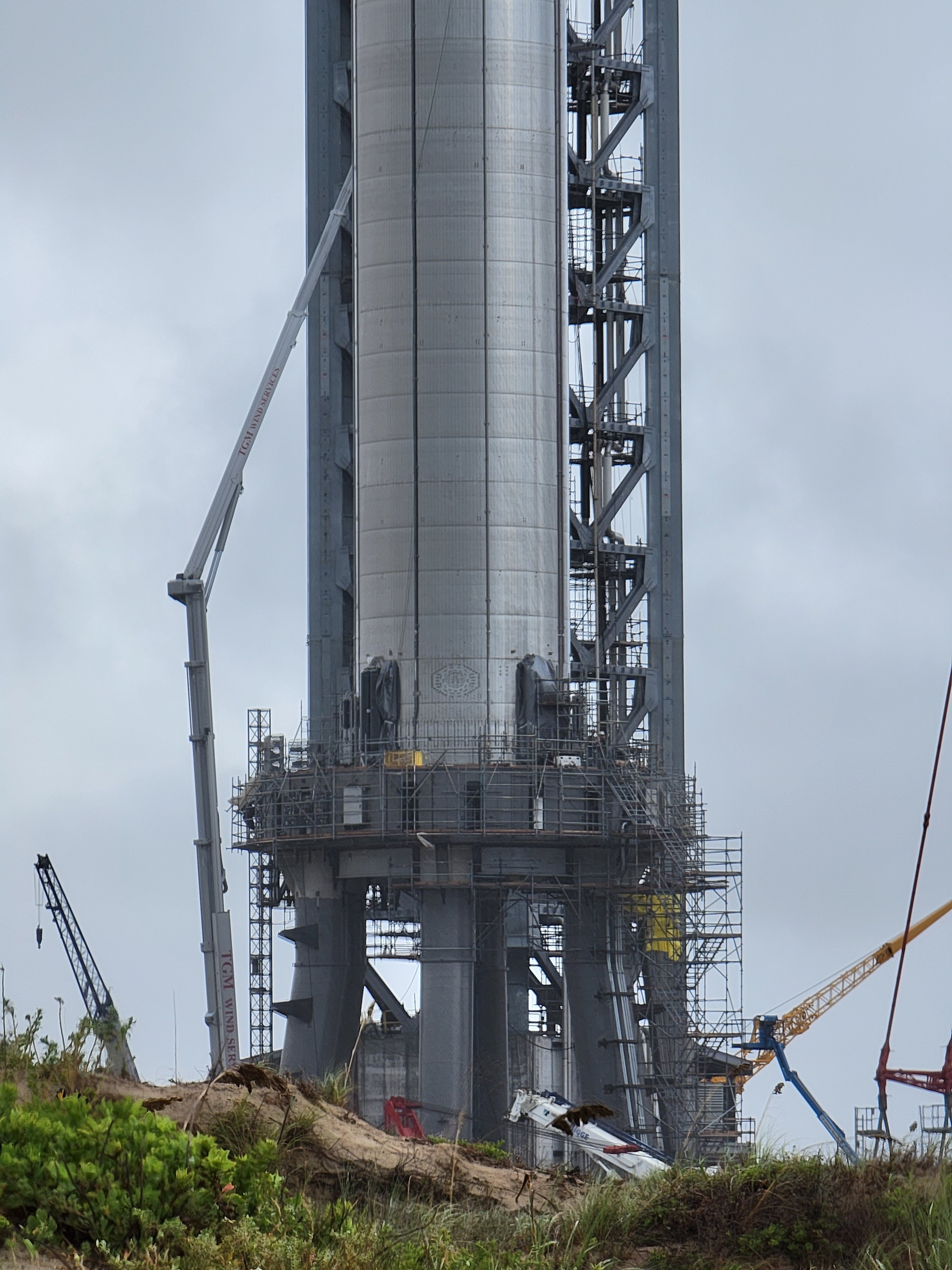 Тем временем к старбазе приближается тропический шторм. Опускают на землю стрелу LR11350. Надеюсь зажимы на стартовом столе работают должным образом и B4 не забудут наддуть. Иначе его прожига мы так и не увидим.