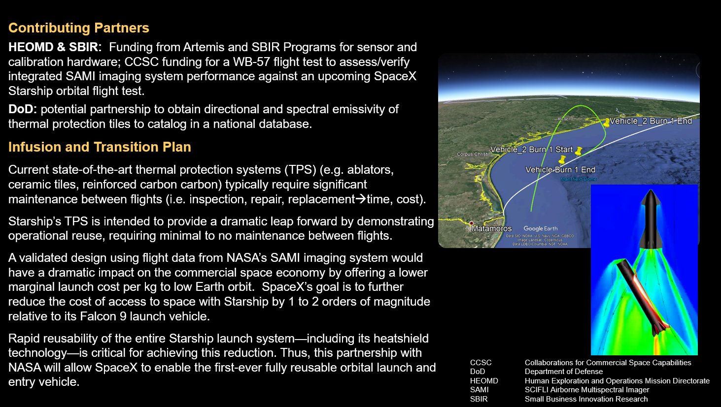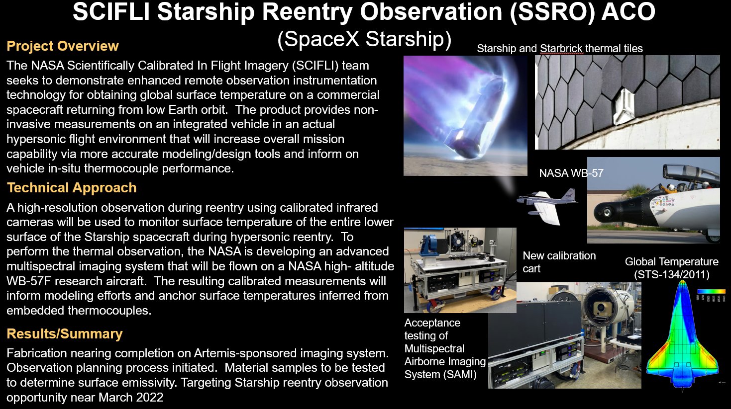 НАСА готовит новое оборудование (мултиспектральная, шибко калиброванная ИК камера высокого разрешения) для своего высотного самолета-наблюдателя. Будут наблюдать за поведением ТЗП (теперь это не плитки а ЗвездныеКирпичики - СтарБрикс. у Маска, походу, все звездатое) Старшипа при входе  в плотные слои атмосферы.