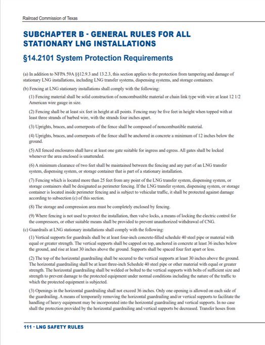 Цитата: undefinedI really don't know how they missed these....but here's some important rules about storing #LiquidNaturalGas in the Country of Texas as defined by the Railroad Comm. Most important rule...is that EVERY RULE listed must be followed before these tanks can be put into service.
