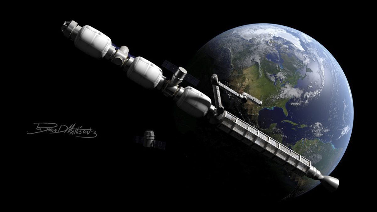 Bombardier's space train was inspired by Buzz Aldrin's Mars Cycler, conceived in the 1980s.