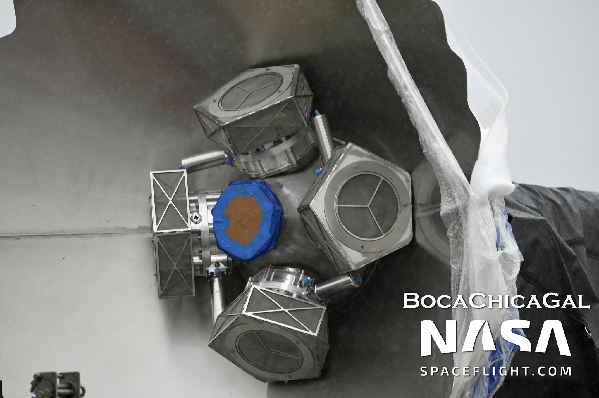ИМХО, очевидно, что эти тепловые экраны будут не только в B4, но и в других версиях бустеров. И чтобы демонтировать какой-то Раптор придется демонтировать экран, а может быть и два сразу. Вот такой технологичный двигательный отсек для СХ придумали в SpaceX. Молодцы! Аплодирую стоя.  ::)