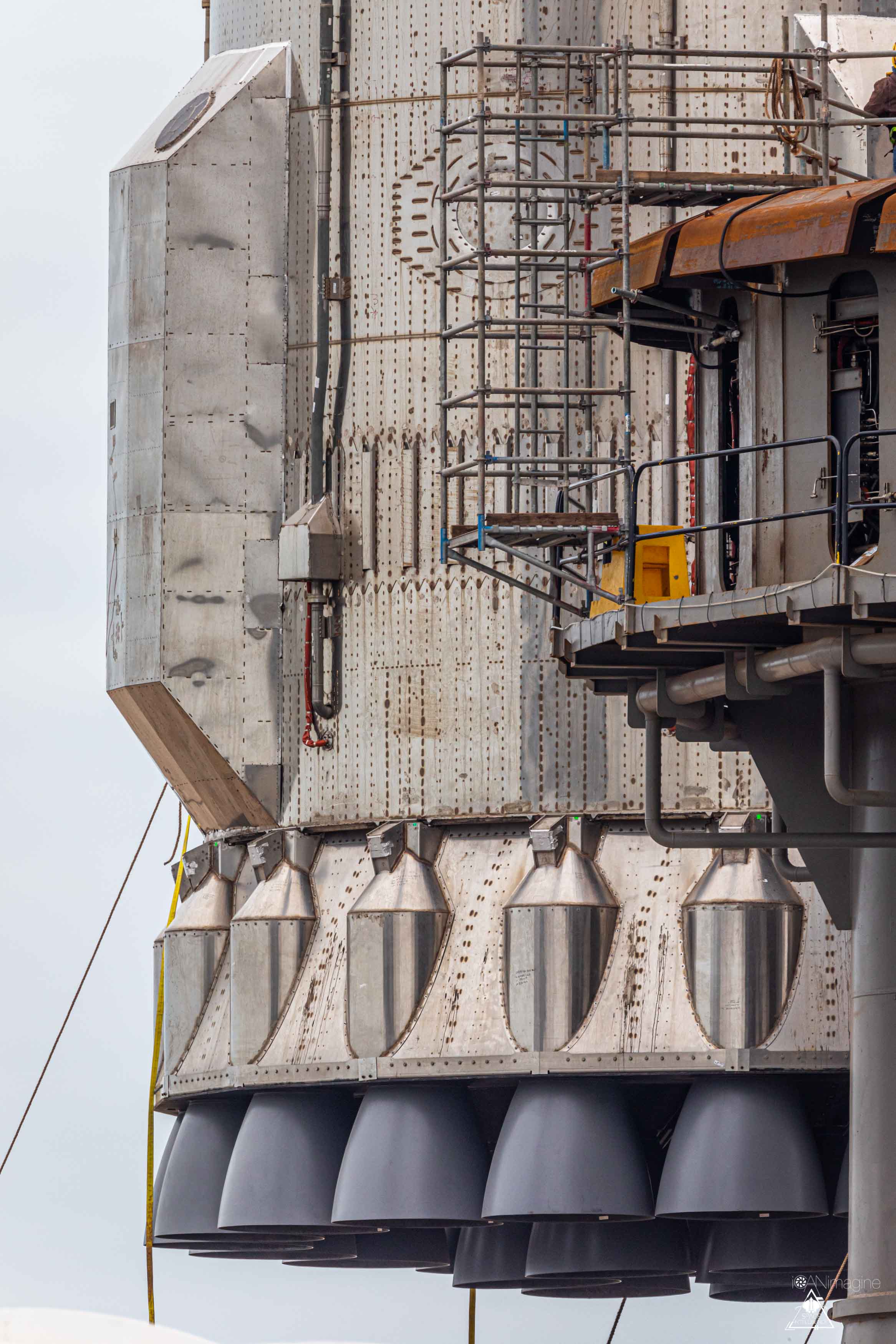 Цитата: V.B. от 08.02.2022 17:38:39Мне тоже видится, что сопла внешних Рапторов вставлены в какое-то кольцо из темного материала. Вот здесь видно, что это кольцо прикручено болтами по внутреннему диаметру: