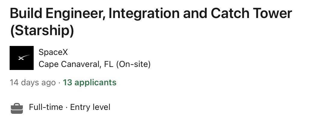 Цитата: undefinedSpaceX is hiring engineers for the Integration & Catch Tower at Cape Canaveral! It's coming!!