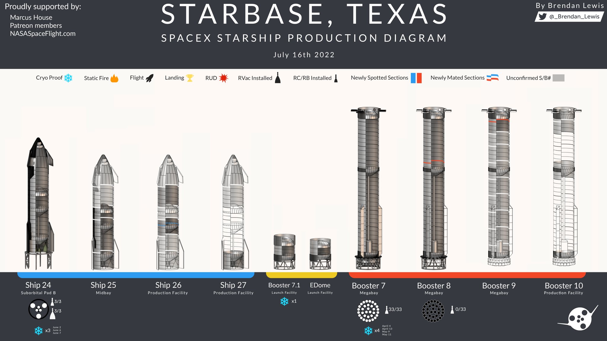 Обновленный прогресс по прототипам в Бока-Чике https://twitter.com/_brendan_lewis/status/1548306358709039105