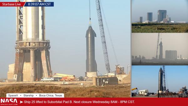 Тем временем, С25 установили краном на суборбитальный тестовый стол в лучшем техасском стиле "упрись ногой, затолкай плечом", а бюрократам и дела нет, пока лететь не собирается, и отдавить хвост черепашке напрямую не угрожает.