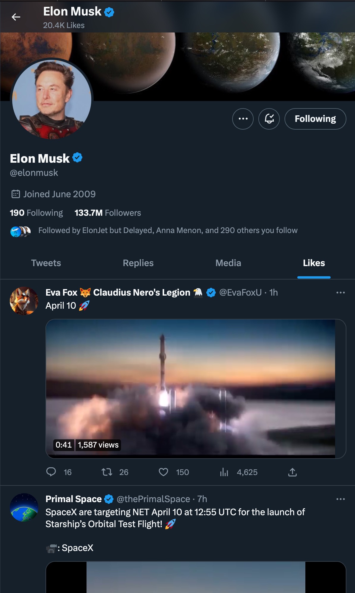 Илон перешел в стратегию лайков - на этот раз он лайкнул твит от Eric Berger: