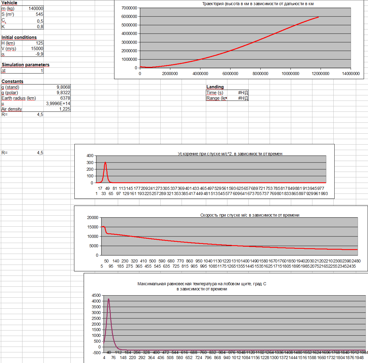 Неправильная траектория, можно выбрать с какими угодно огромными перегрузками, но не надо. Какая нужна - общее представление можно получить в работе о крылатом лендере для второй космической.