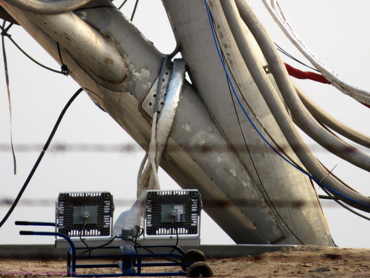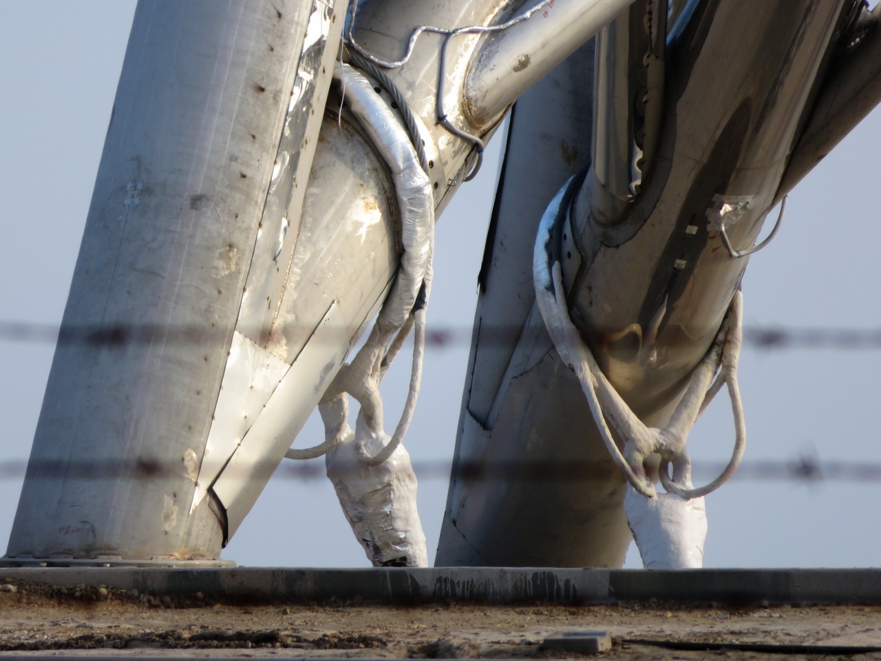 Кое где уже пишут про подскок, позабавило. На фото отчетливо видно - ферменная конструкция, на которой подвешен Раптор. Каждая опорная нога пришпандорена аж в двух местах тягами с петлями к фундаменту. Так что в пределах упругости сей конструкции , если нет сильной превдварительной подтяжки тяг, можно и попрыгать немного. Можно и антракцион показывать, для этого под каждую опору подсунуть упругую опору с демпфером. Включил движок - подъем, выключил - плавненько опускается, все в огне, в дыму, можно шикарный ролик снять, особенно замаскировав упругие опоры. Публика будет биться в экстазе - ща, полетим, немного осталось!!! :D