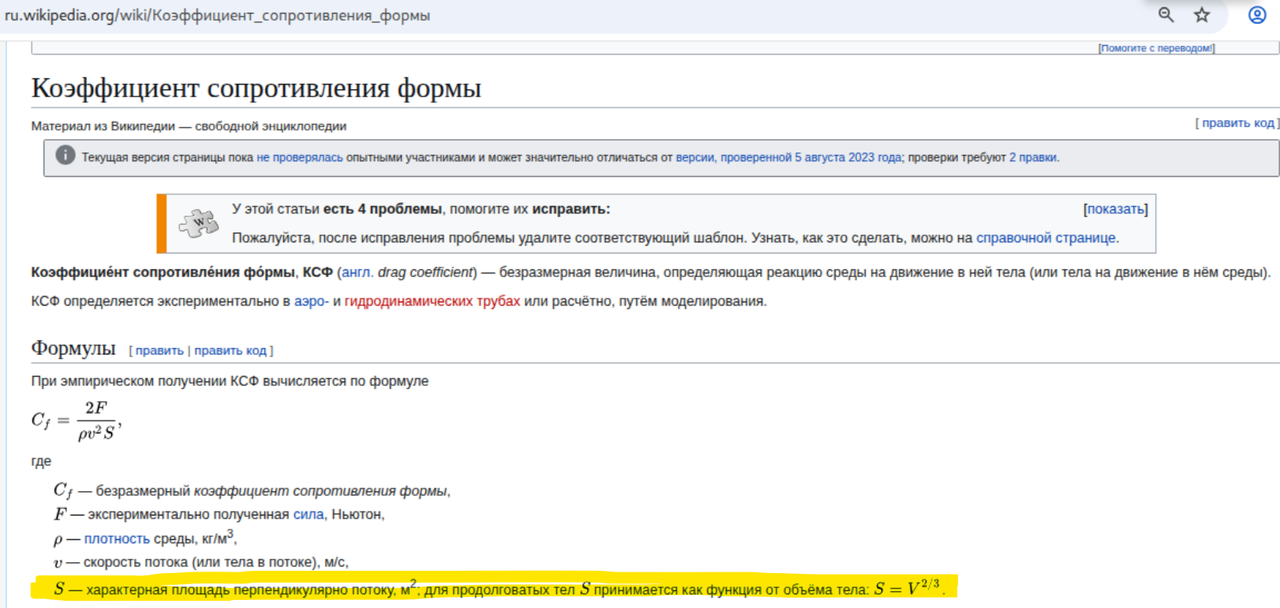Цитата: cross-track от 11.11.2025 08:59:59Иногда площадью миделя[3][4] называют площадь проекции тела на плоскость, перпендикулярную направлению движения тела.