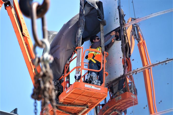 Снятие пленки со звёзд на корабле. Покрытие лифта в пластике, чтобы защитить себя от тройного тепла.