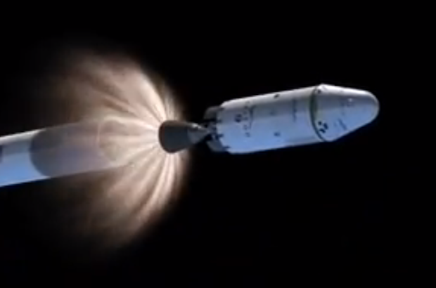 The second stage Merlin vacuum engine ignites for a nearly seven-minute burn to inject the Dragon payload into orbit.