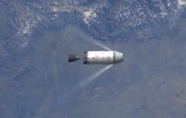 The Dragon spacecraft separates from the Falcon 9 second stage to begin pursuit of the International Space Station.