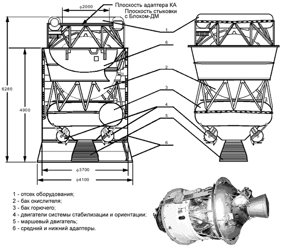 Знает ли кто-нибудь, как устроена система ориентации на этом блоке? :) На картинке её движки показаны по бокам сопла маршевого ЖРД.