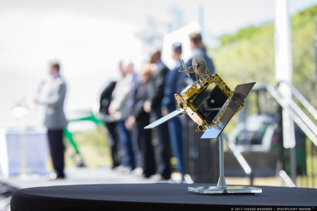 On hand for today's ceremony were Brian Holz CEO of OneWeb Satellites, Mike Cosentino (President of Airbus Defence and Space Inc.), and a number of officials involved in the project.