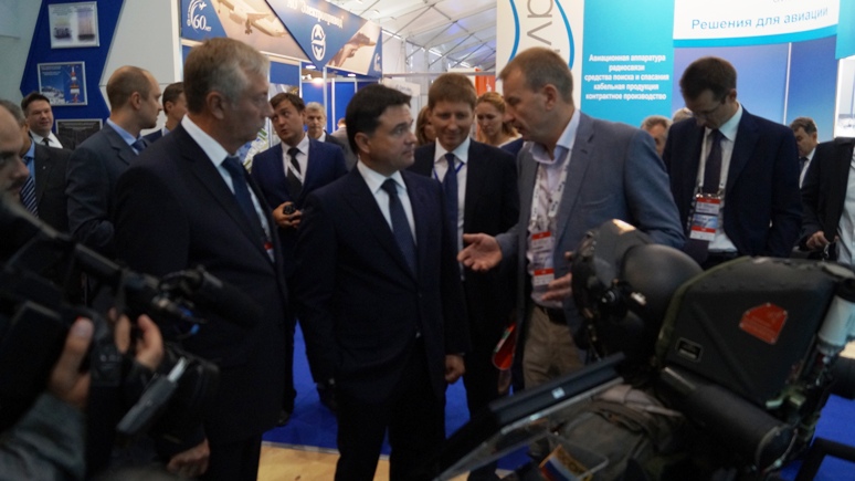 Губернатор Московской области Андрей Воробьев посетил стенд нашего предприятия. Особый интерес у него вызвало катапульное кресло пятого поколения и высотно-компенсирующее снаряжение летчика.