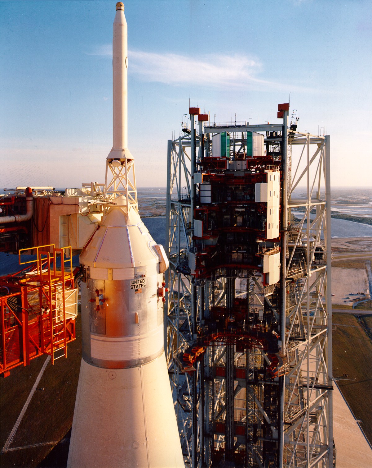 Ракета едет на старт. Башня ждёт в сторонке: http://www.gbphotodidactical.ca/images/wallpaper-NASA-41-Apollo-4-Roll-Out-1967-08-26-fs.jpg