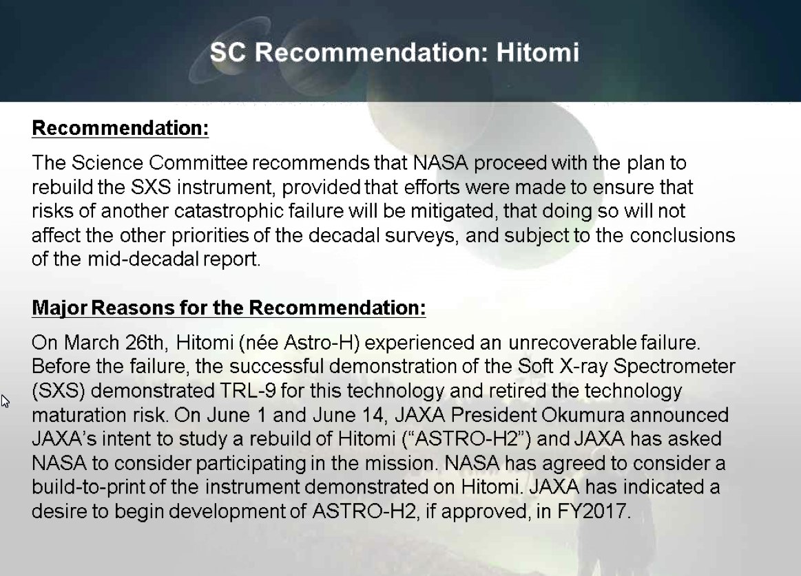 Hertz: JAXA has announced an intent to study a rebuild of Hitomi x-ray observatory; wants NASA to provide copy of Soft X-Ray Spectrometer.