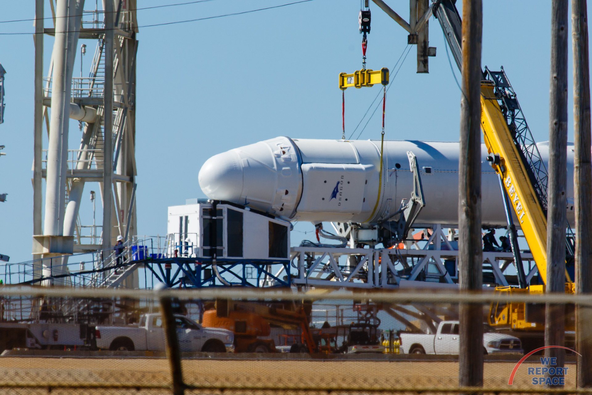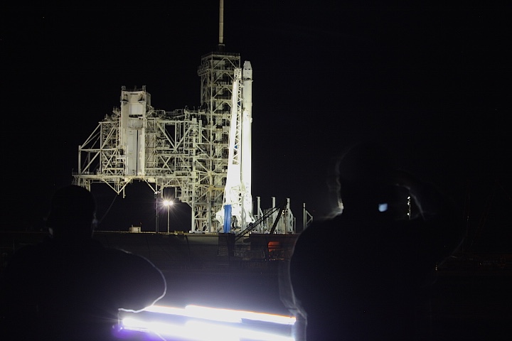 The Falcon 9 rocket is standing on top of launch pad 39A again as the countdown enters the final seven hours before liftoff.