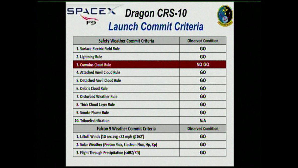 Cumulus cloud rule currently "red" as the Air Force weather team tracks scattered showers around Falcon 9 launch pad https://s3.amazonaws.com/sfnstatus/status.html ...