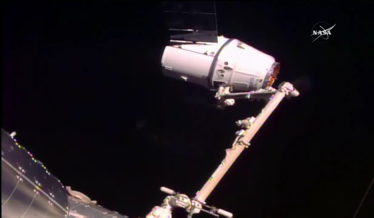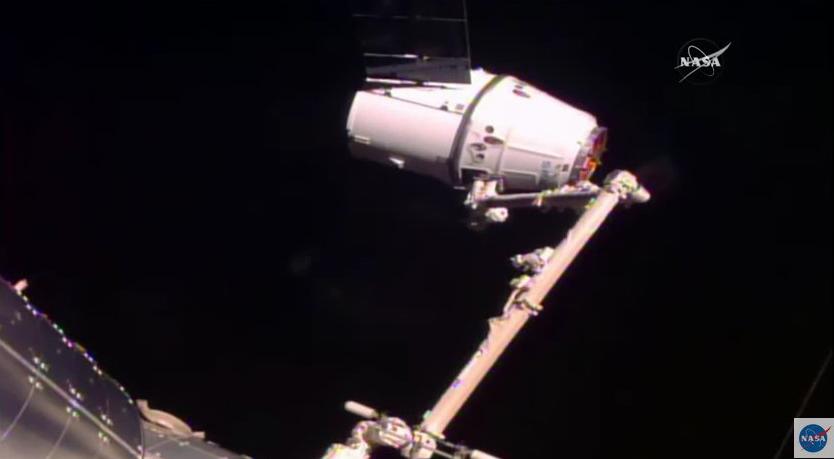 CAPTURE - The #Dragon has been tamed after taking the scenic route to the Space Station, delivering 2,490kg of cargo http://bit.ly/2lXzN5r