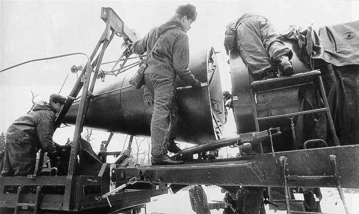 Снятие тяжелой БЧ 8Ф126 с ракеты Р-12 (http://ruzhany.narod.ru)