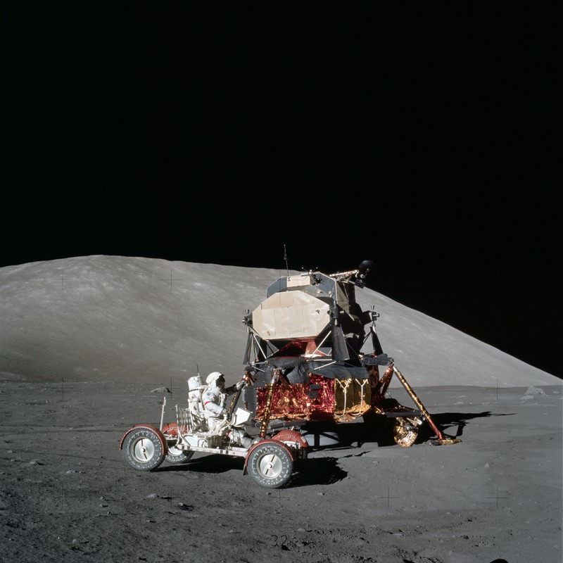 С самого начала было известно, что в пилотируемый модуль, который доставит нас с поверхности Луны обратно на орбиту, Шмитт должен войти первым. Когда мы улетали, он быстро поднялся по лестнице и скрылся внутри, а я преодолел три или четыре ступеньки и обернулся.