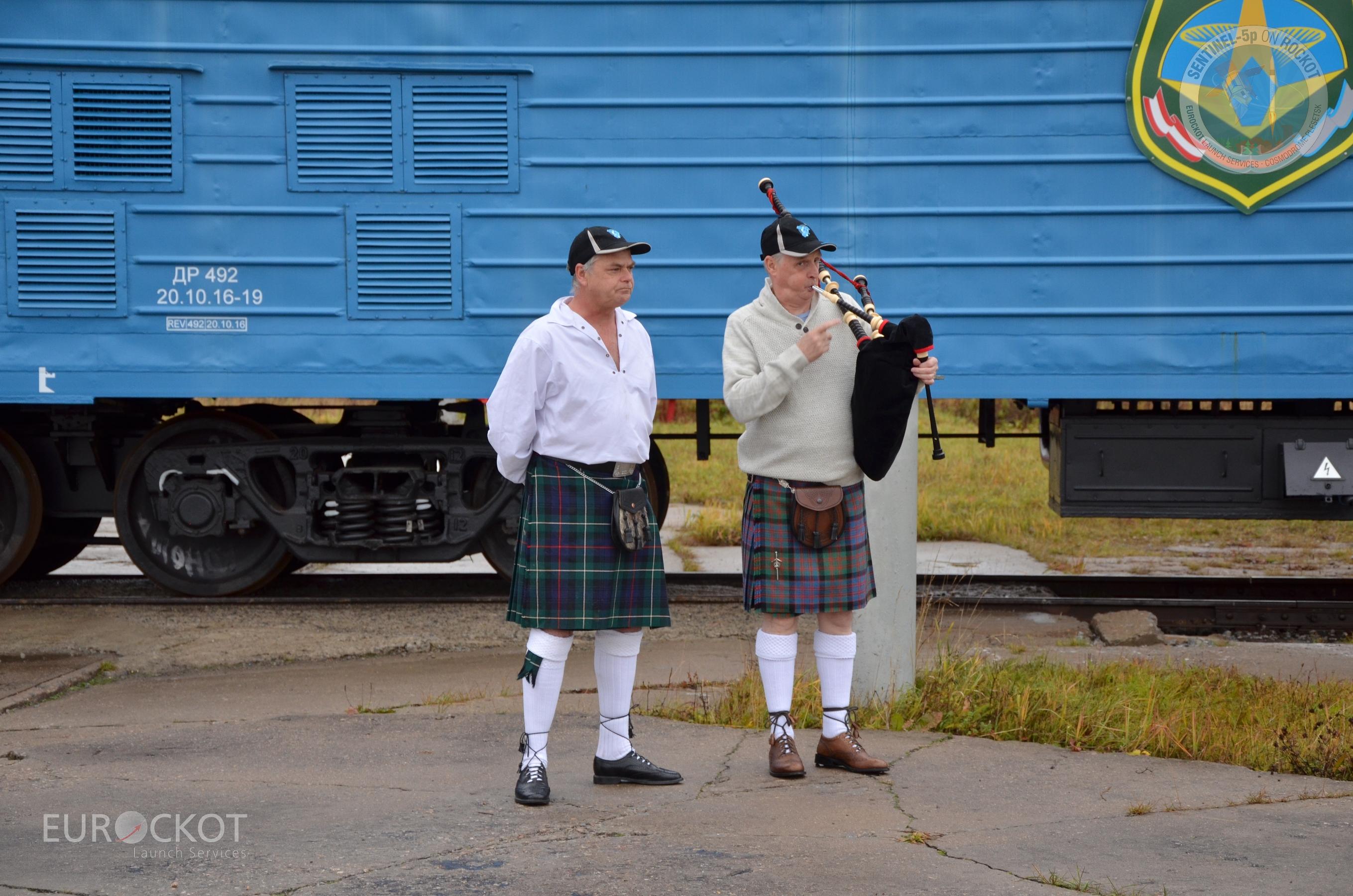 With the fairing installed and the logos in place, yesterday each member of the launch campaign team signed the logo while Del played the bagpipes.