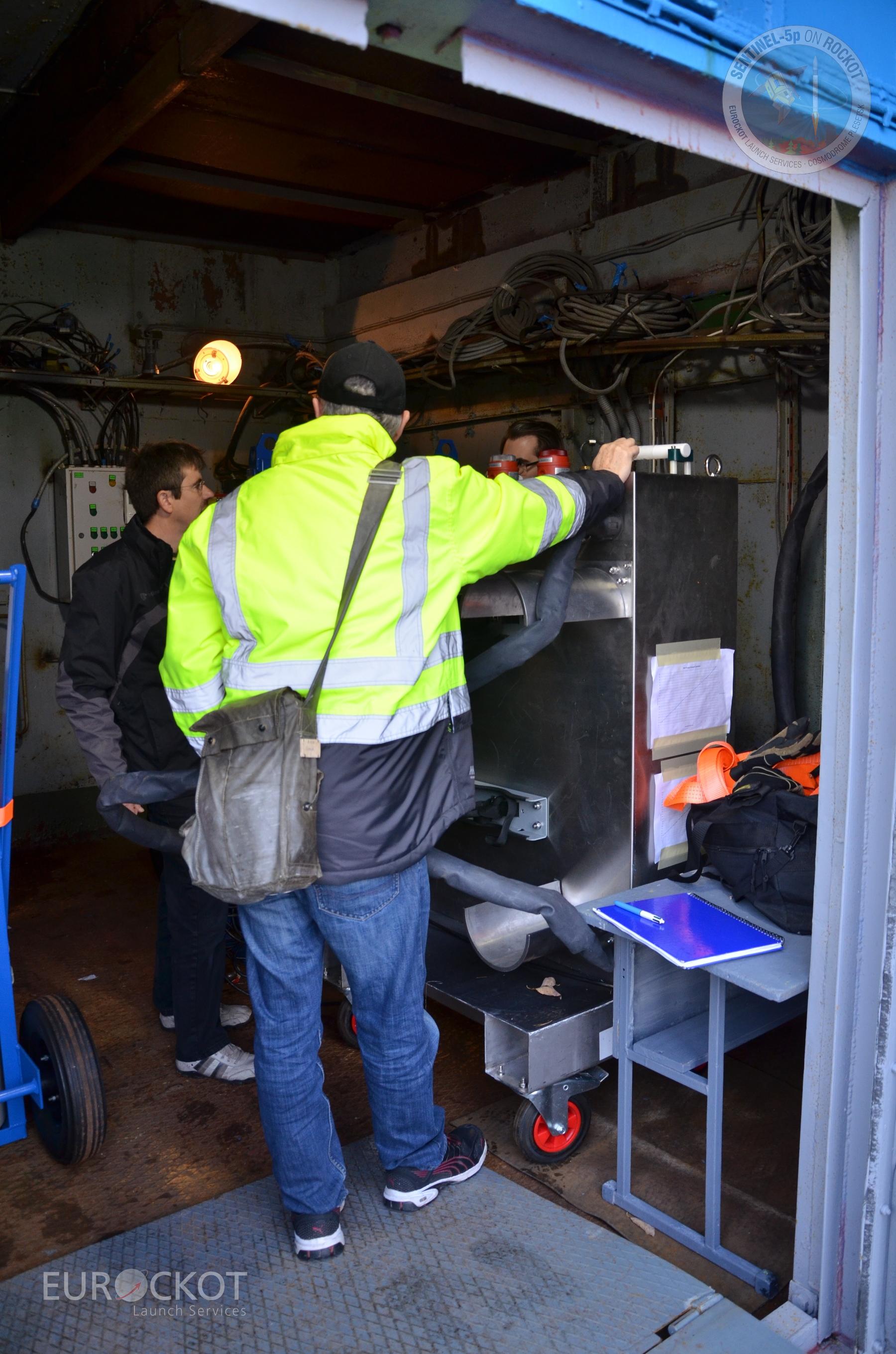 Following some electrical and RF tests (all working well!), a thermal cover was installed on the Ascent Unit in preparation for its four-hour journey to the launch pad. It was then hoisted in the air and placed onto a special train carriage. The team then connected the 'purge cart' to keep the instrument clean during transport.