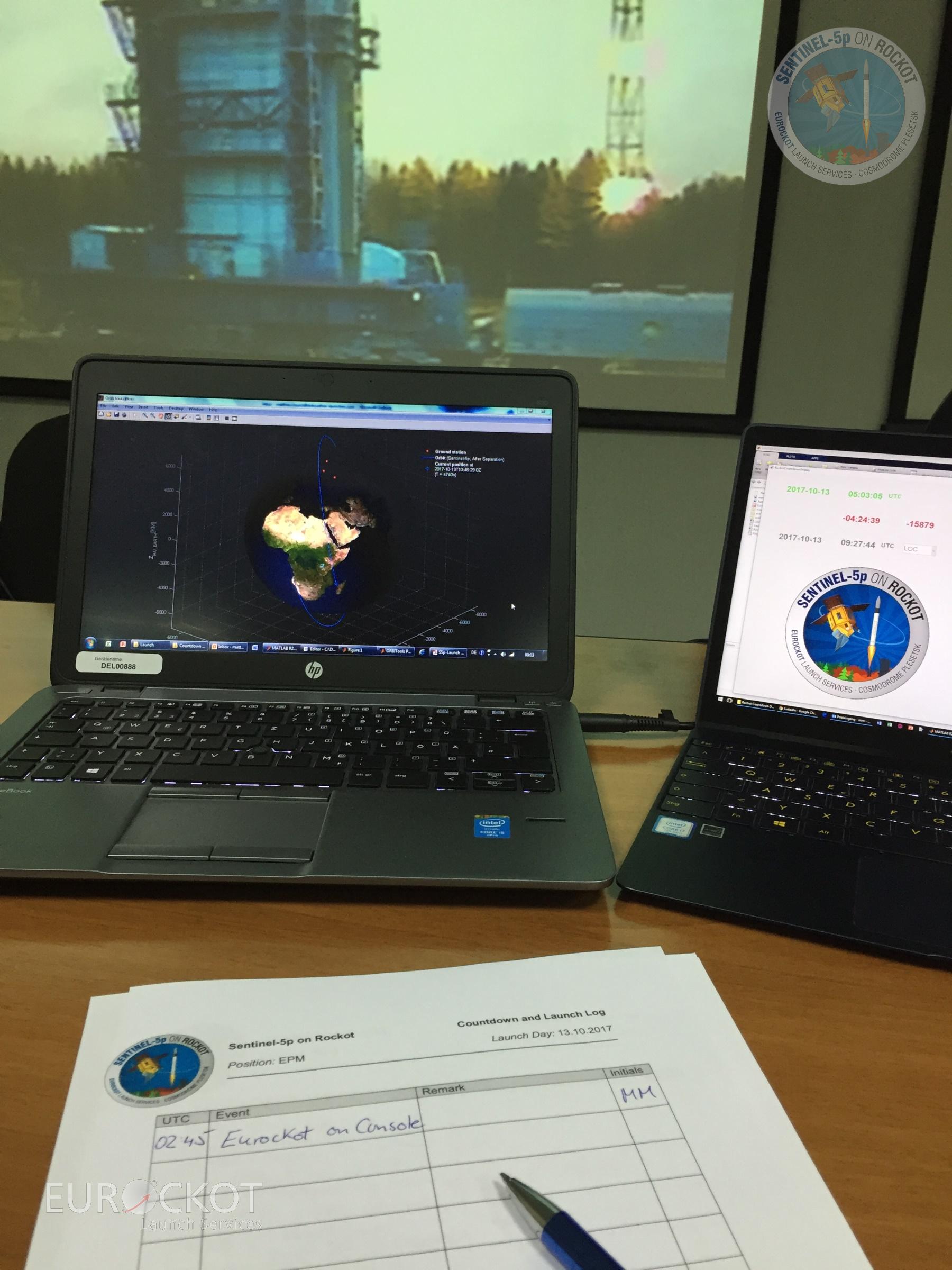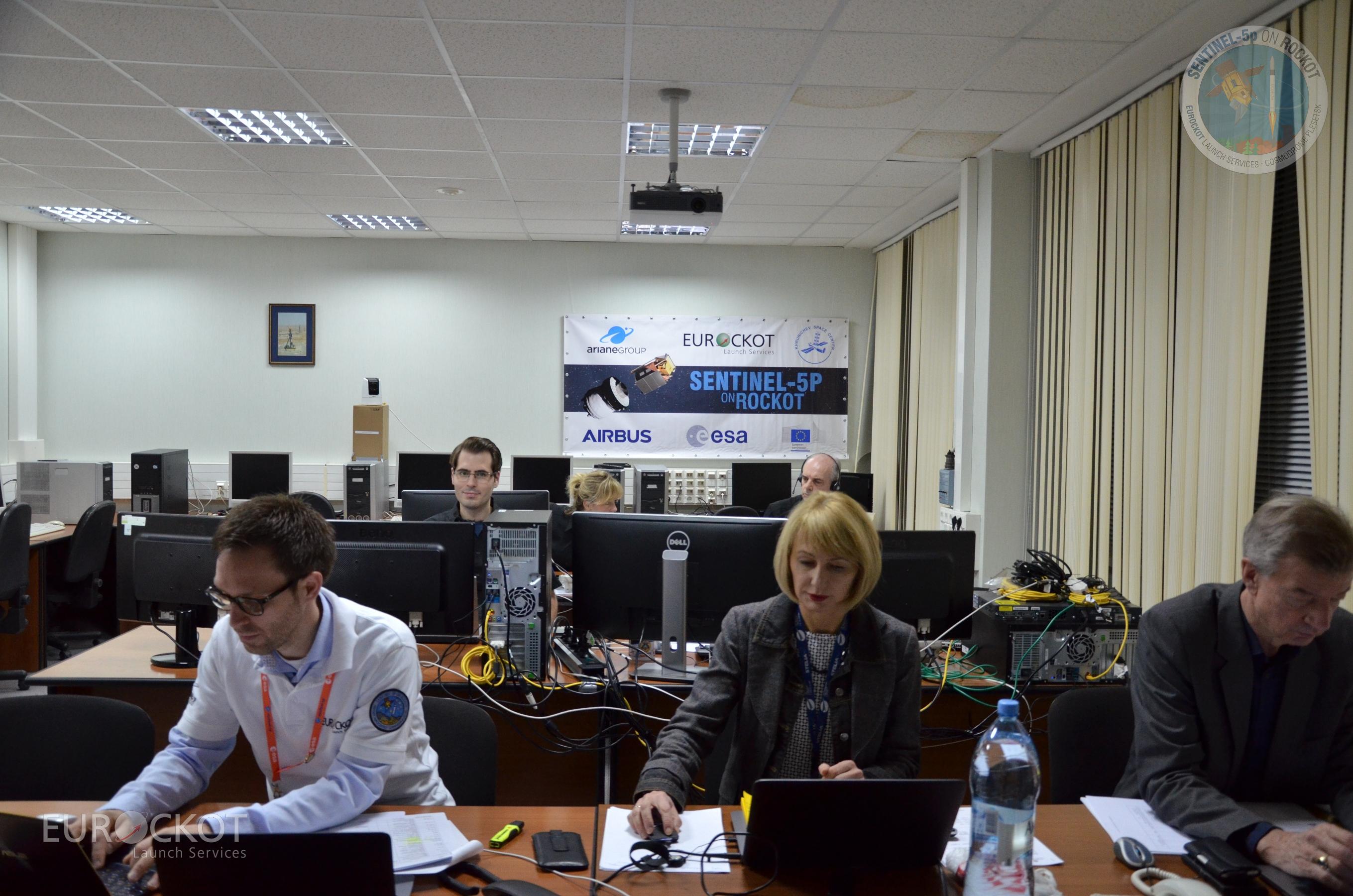 The launch team is on console at the Plesetsk Cosmodrome Mission Control Center to support the launch of Sentinel-5p on Rockot at 09:27:44 UTC (11:27:44 CEST) today – counting down ...