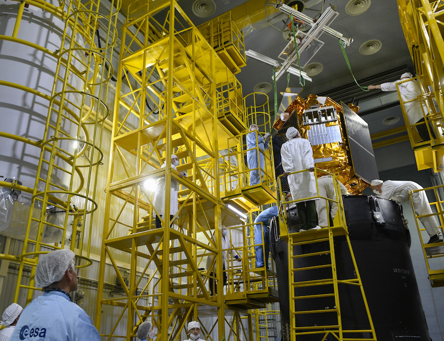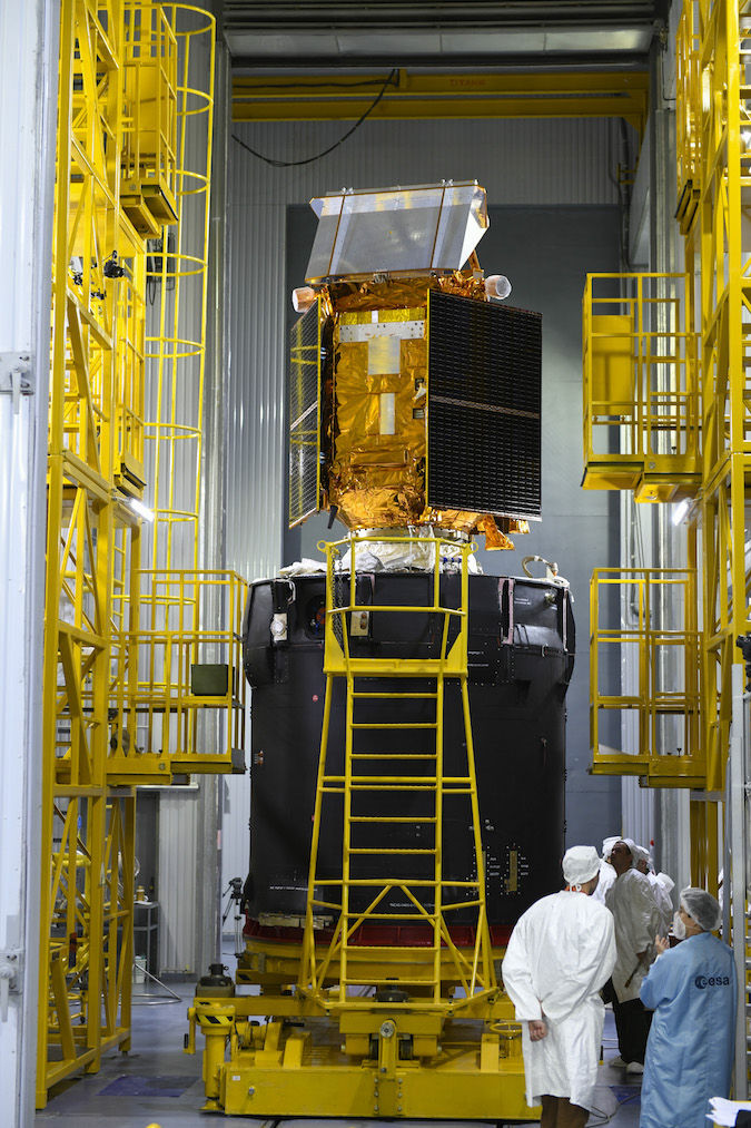 The 1,800-pound (820-kilogram) spacecraft is set for launch Friday at 0927:44 GMT (5:27:44 a.m. EDT; 12:27:44 p.m. Moscow time) to begin a seven-year Earth observation mission for the European Space Agency and the European Commission.
