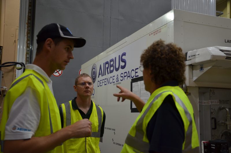 After the last couple of days spent unpacking and setting up all our support equipment, taking Sentinel-5P out of its transport container and positioning it for testing, yesterday we were ready to switch the satellite on to make sure all was well after its journey – always a tense moment.