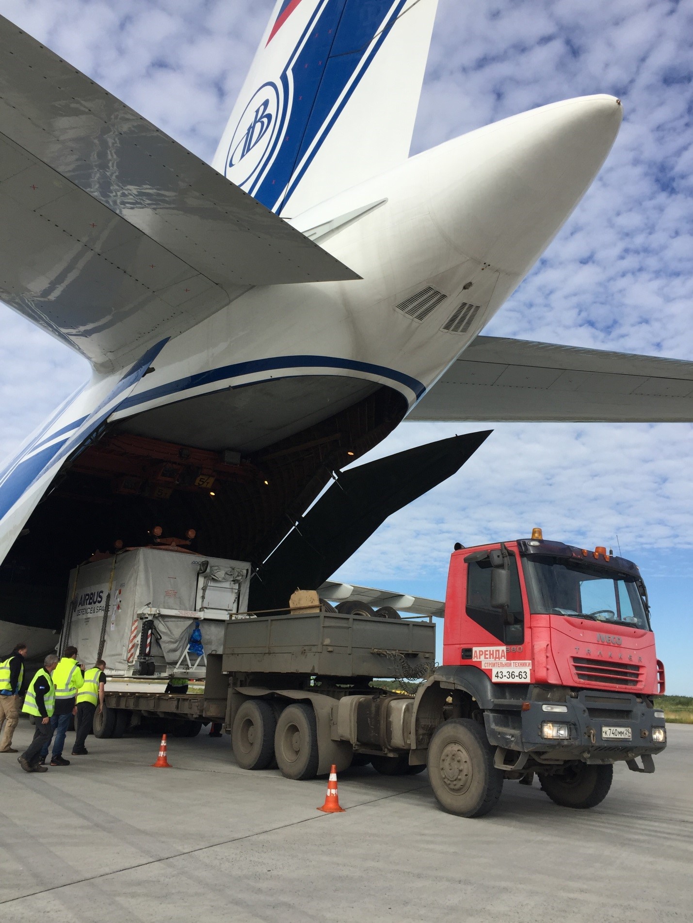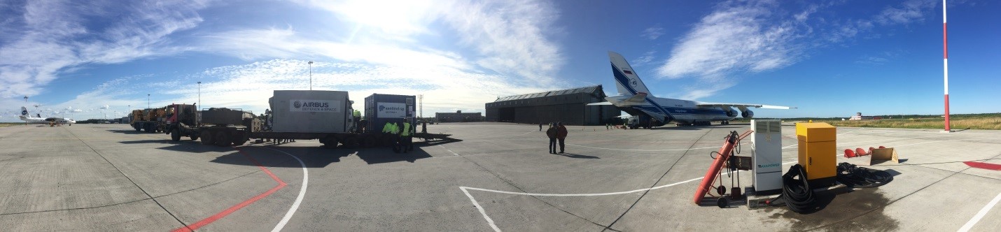 Volga-Dnepr flight VDA4900 arriving in Archangelsk delivering Sentinel-5p (credits: Eurockot Launch Services)