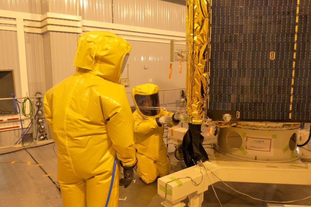 The satellite completed a pressure test in preparation for fuelling and the fuel has now been moved into the cleanroom.