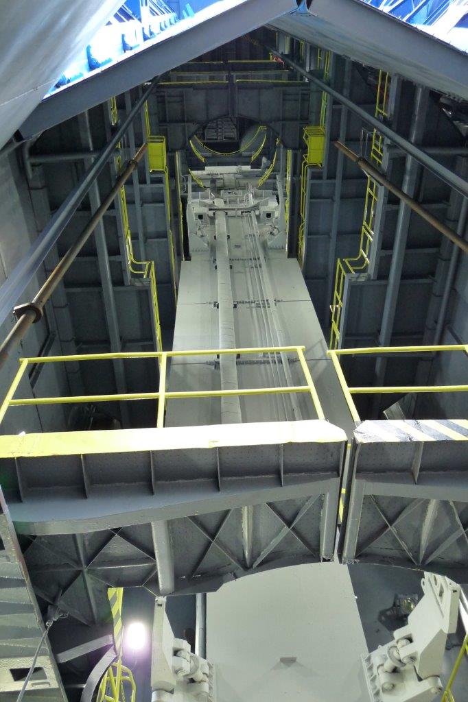 In order to show the launch pad to the visitors from ESA, the doors of the launch tower were opened and gave a good view inside this huge construction. On the side of the launch tower 26 stars are attached representing 26 Rockot launches, 12 Eurockot and 14 federal launches.