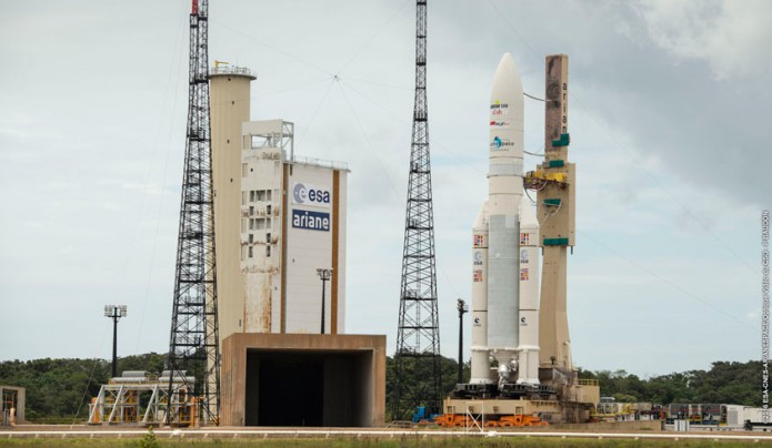 Ariane 5 is in the launch zone for tomorrow's heavy-lift Arianespace mission