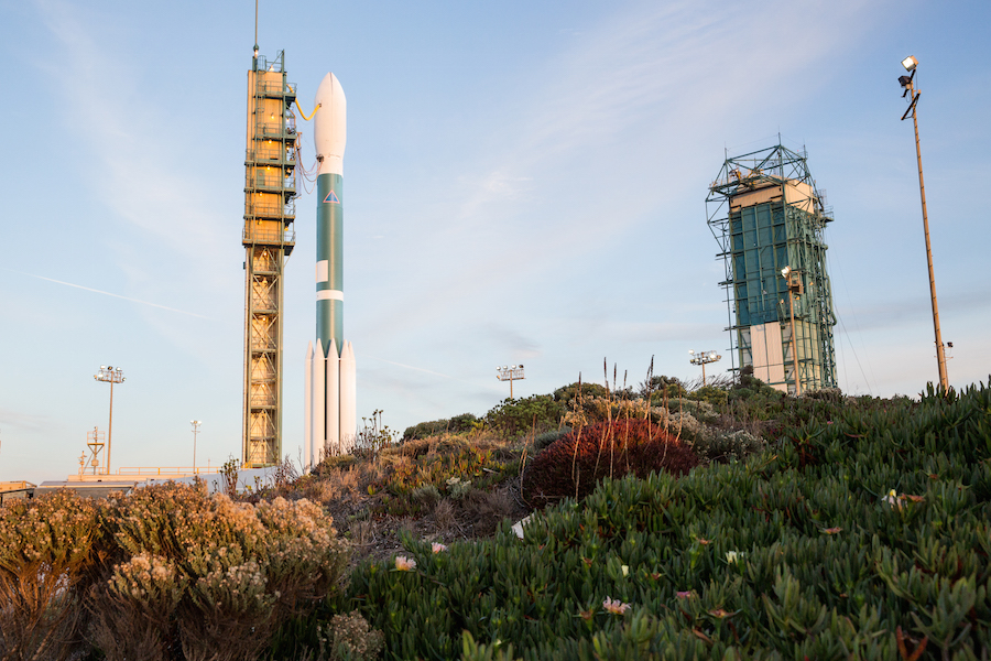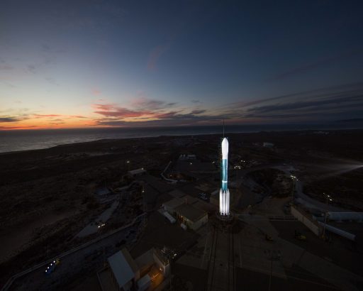 The Delta 2 rocket stands at Space Launch Complex 2-West at Vandenberg Air Force Base, California, awaiting liftoff with the JPSS 1 weather satellite. Credit: ULA/Walter Scriptunas II