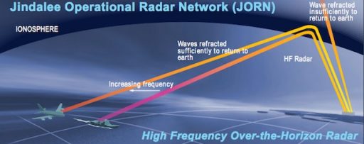 The Jindalee Operational Radar Network (JORN) is used by the Australian Defence Forces to observe air and sea activity north of Australia to distances of up to 4,000 Kilometers – including Java, Papua New Guinea and the Solomon Islands.