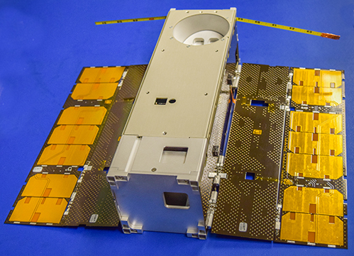 The central Hub concept was chosen to provide a single connection point for all satellite components and thus reduce the probability of assembly errors. It also allows for equal access to the satellite's resources for all four science payloads.