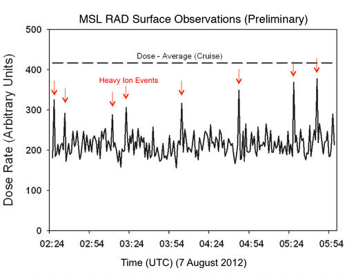 Данные RAD по дозам на Марсе и в полете: