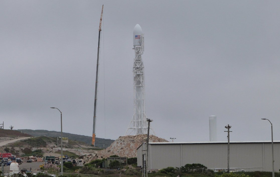 Falcon 9 is on her SLC-4E pad at Vandenberg. FAA approved. In (likely complete now) LRR. On track for Formosat-5 launch tomorrow.